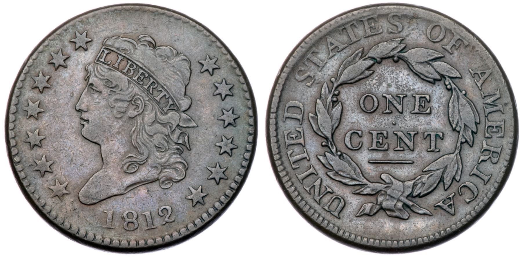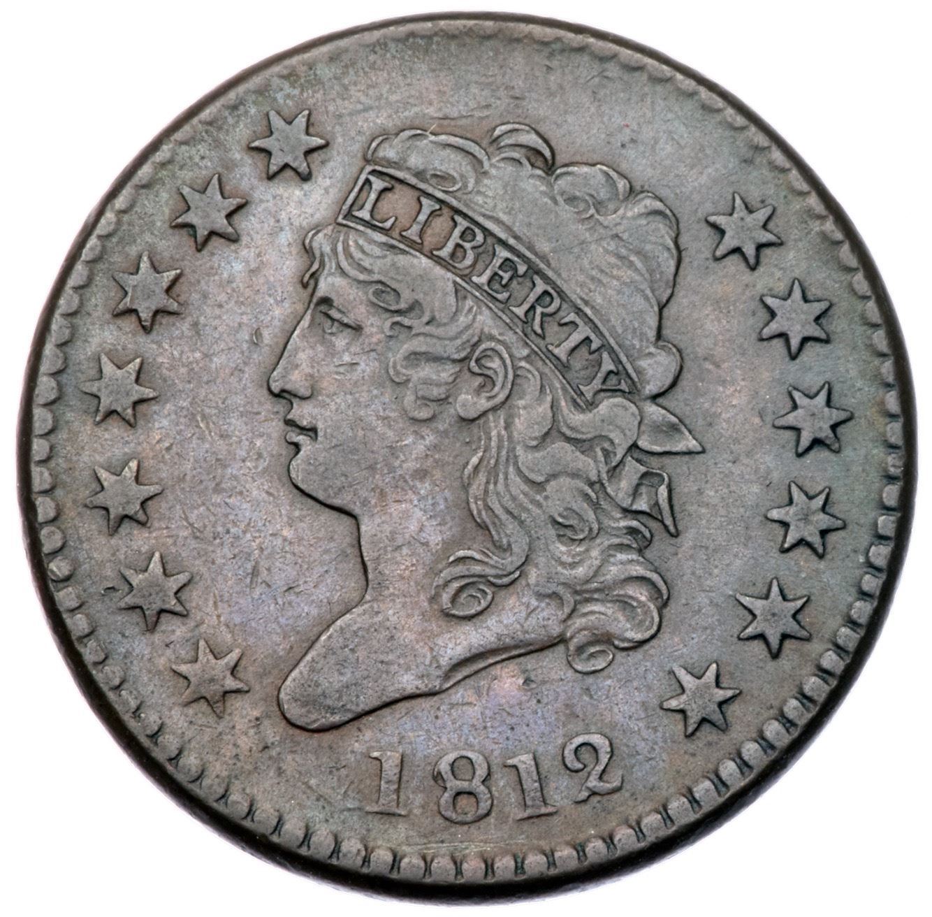 1812 S-288 R2 Large Date VF20Slightly sharper with nice eye appeal and mostly smooth surfaces, but there is some very fine roughness inside the wreath. Glossy chocolate on the obverse with darker olive brown and steel on the reverse. No verdigris or notable contact marks. MDS, Breen state II, with die clashmarks inside the wreath and a strong line through the base of the N in CENT.Certificate Number: Pedigree: From the Fred H. Borcherdt Collection