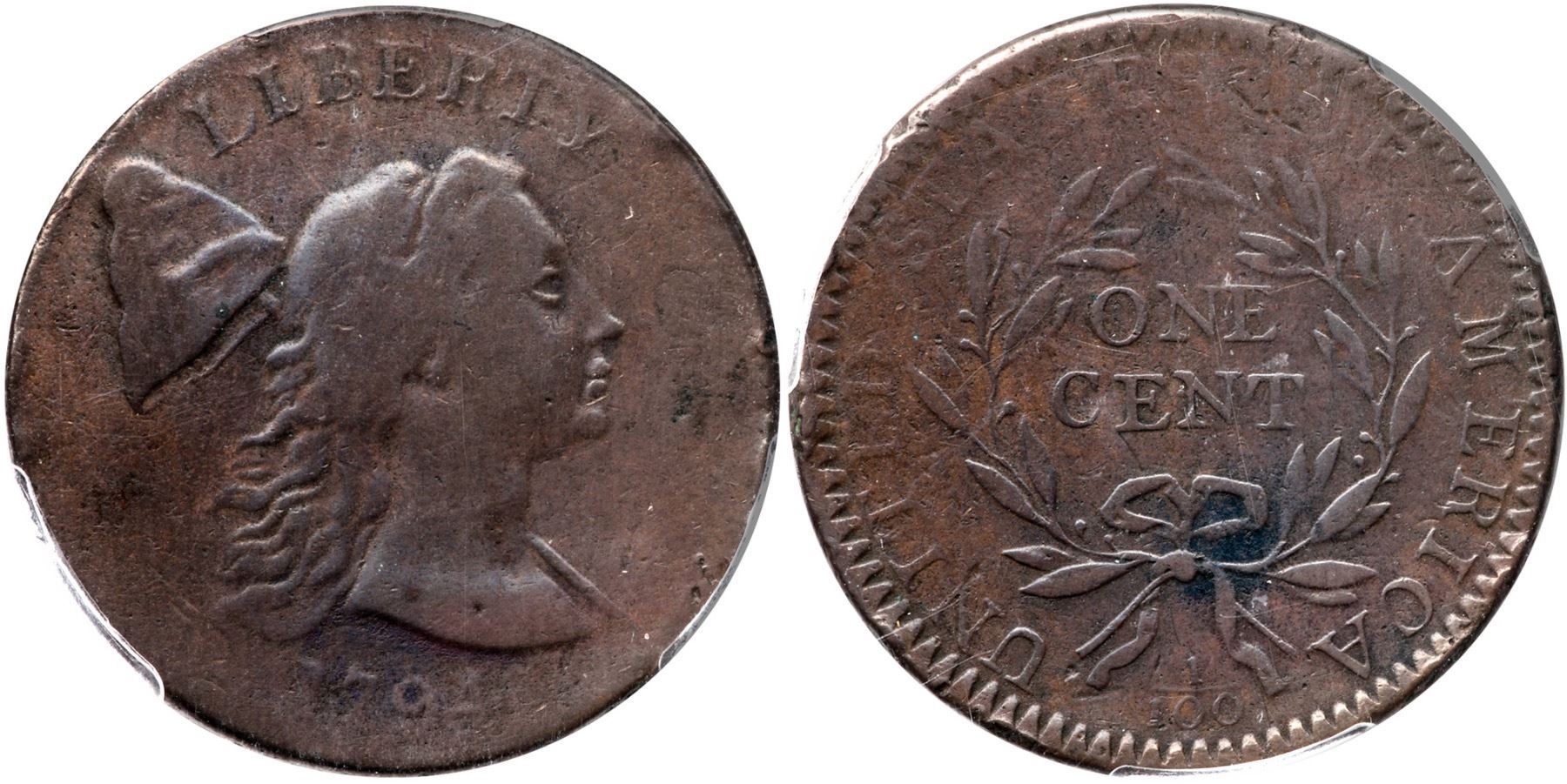 1794 S-19a R-5 Head and Edge of 1793 PCGS F Details (Rim Damage)Fine sharpness but there are several bruises and nicks on the rims. The most notable include one before the mouth, one after Y in LIBERTY, and another over ED in UNITED. The date and reverse legends are weak in places but fully readable. Double Chin, Head of 1793. Our grade is VG10.Certificate Number: 35516.98/44293929Pedigree: Ex; Col Ellsworth Collection