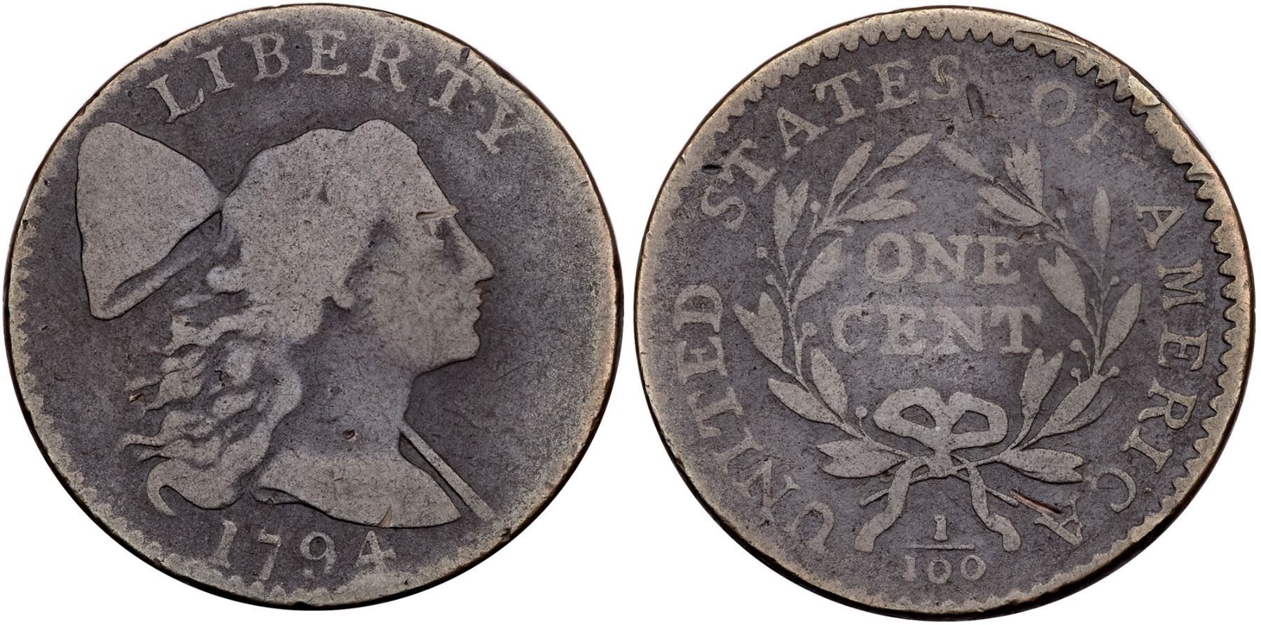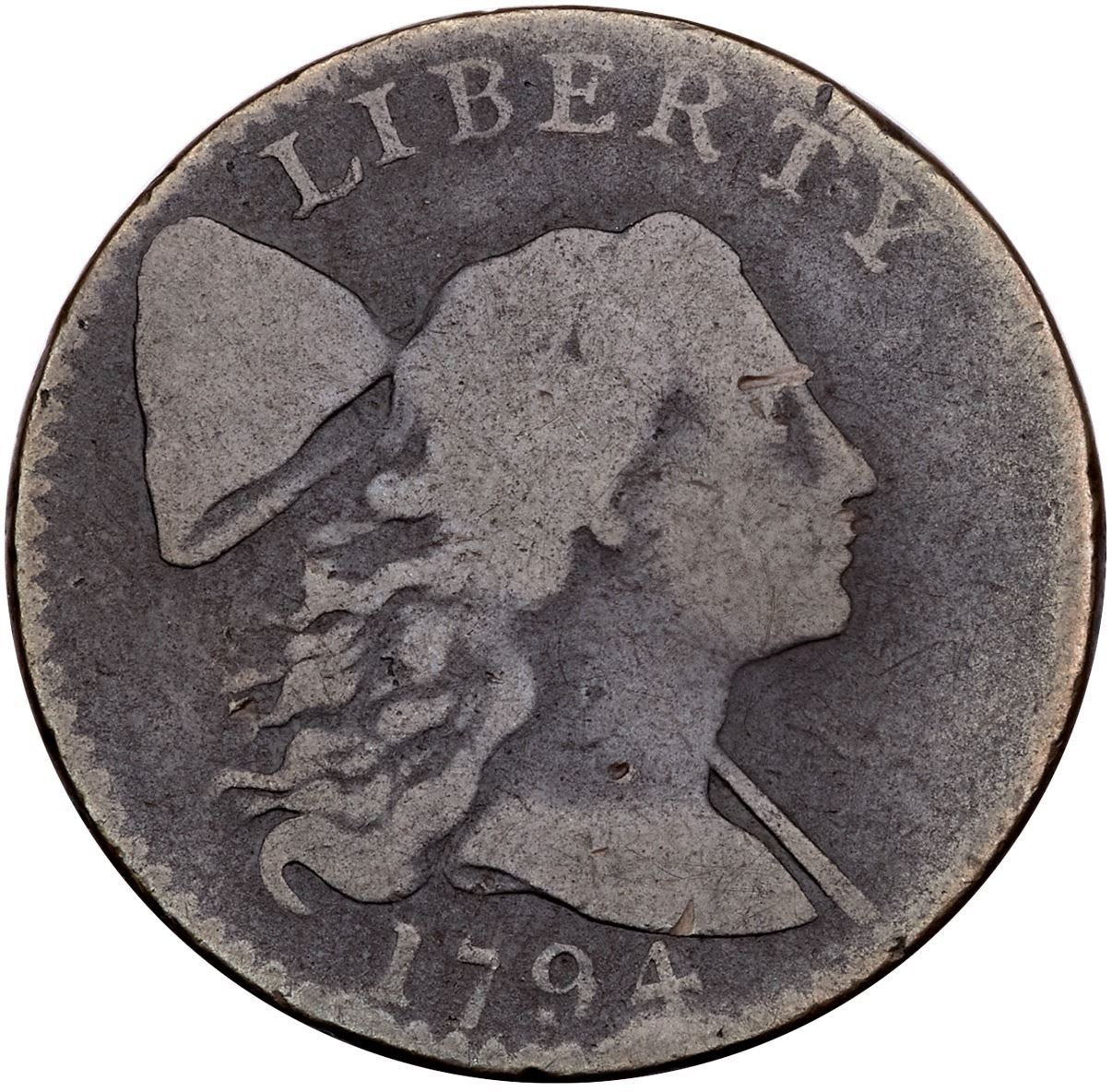 1794 S-36 R-5 G6A point or so sharper but there are minor nicks on both sides and microscopic roughness on the surfaces. THe notable marks include a nick over the eye, a couple over T and below the last S in STATES, a scratch under the last A in AMERICA, and another scratch on the border over O in OF. There Is also a rim bruise just after OF. Original two tone deep steel with lighter olive on the high points. Graded VG7 net G5 by Noyes, his photo #60640.Certificate Number: Pedigree: Ex; Doug Bird 9/26/08 - Scott Barrett - Shawn Yancey - Kevin Vinton
