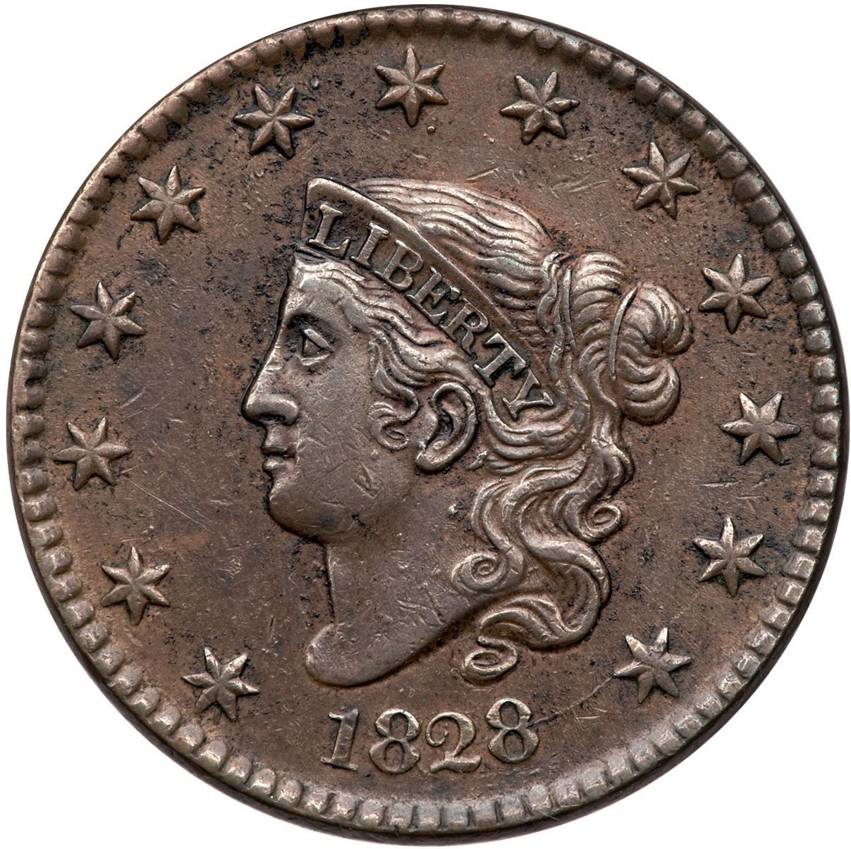 1828 N-6 R-1 VF3010 points sharper but dirty with old crud in the fields and protected areas. There are also various trivial marks on the portrait and obverse fields, nothing major but enough to warrant mention. Medium steel with underlying light brown on the obverse, the reverse mostly golden brown with steel on the devices and legends.Certificate Number: Pedigree: Ex; Tim Paquette