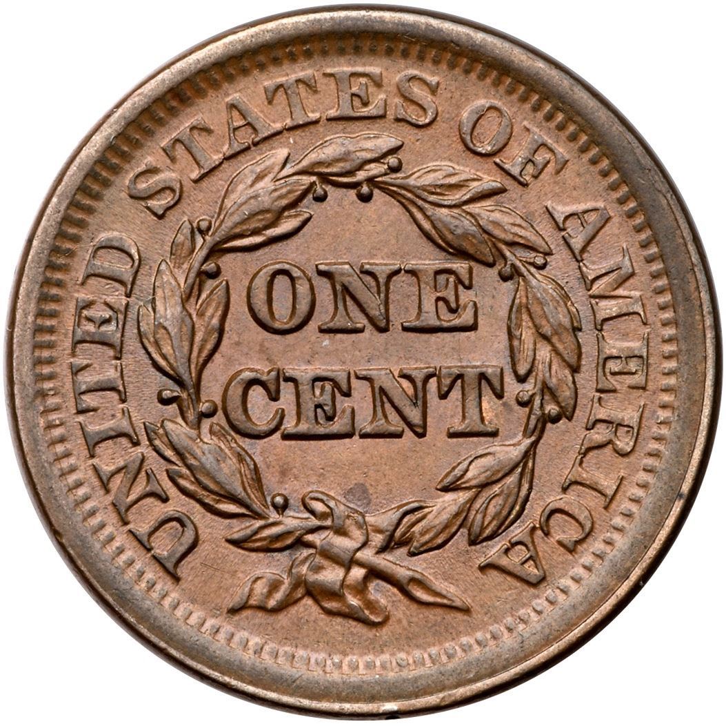 1851 N-39 R-3 AU50Choice tan brown mellowed down from faded mint color, mellowed to light steel on the high points. There is a small hairline scratch from below the lips through the chin, and a tiny nick above the bust tip. Frosty, lustrous surfaces with great eye appeal. EDS.Certificate Number: Pedigree: Ex; Thomas D. Reynolds - Phil Moore