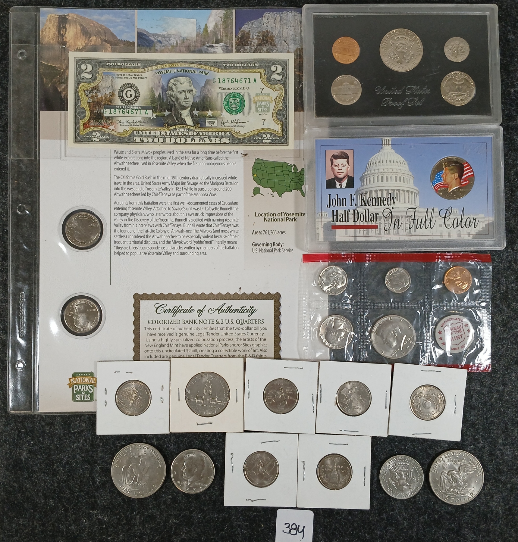 Lot 384 QTY OF MISC US COINS & $2 BANKNOTE