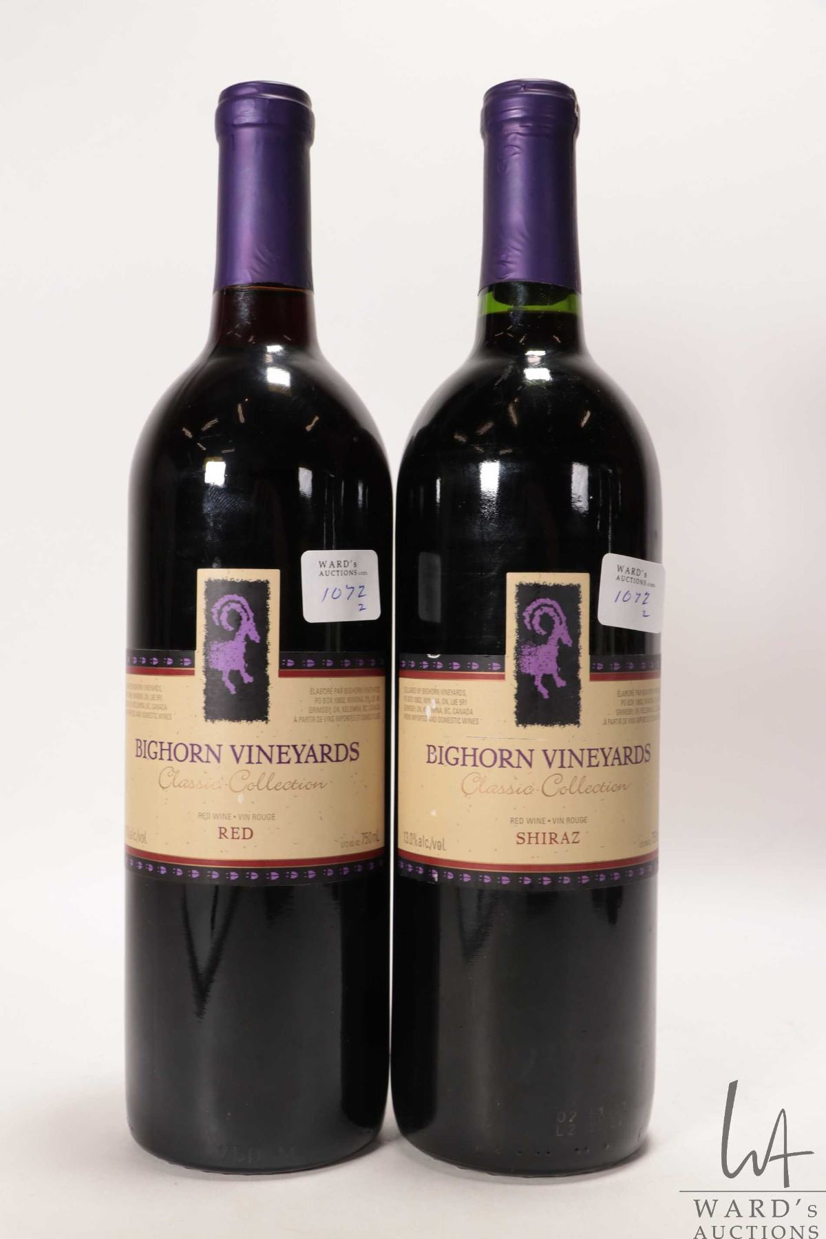 Bighorn Vineyards/ Classic Collection/ Red Wine/ 750ml/ 12% ABV and Bighorn Vineyards/ Classic Collection / Shiraz/ 750ml/ 13% ABV Note: Alcohol cannot be insured by any courier in Canada. Local pick up is recommended. Canadian buyers only.