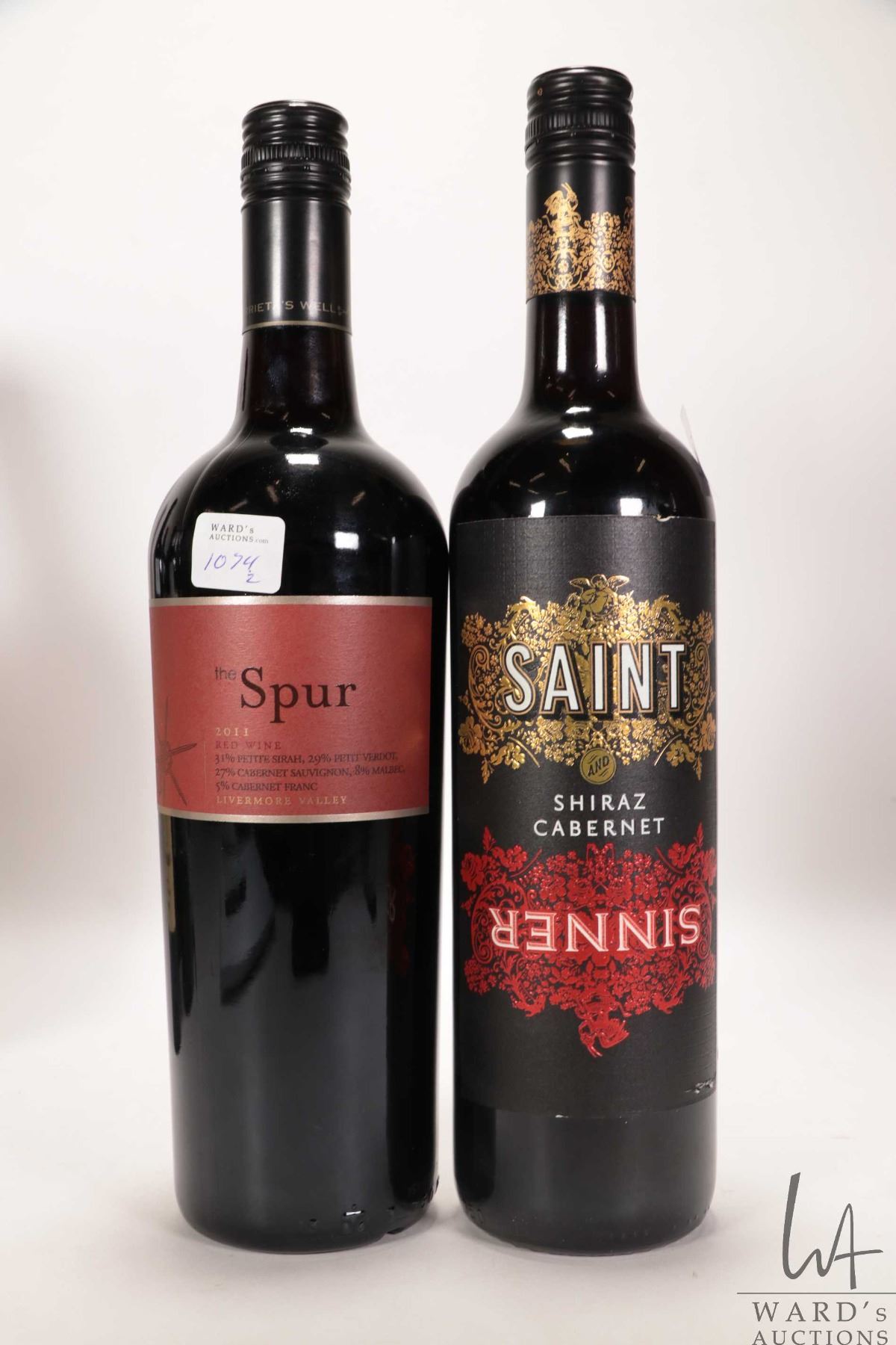 Lot 1074 Saint and Sinner/ Shiraz Cabernet/ 750ml/ 12.5% ABV and the Spur/ 2011/ Red Wine/ 750ml/ 13.5% ABV N