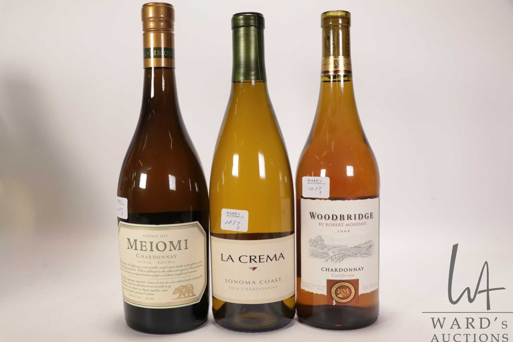 Lot 1077 Woodbridge/ 2008/ Chardonnay/ 750ml/ 13.5% ABV, Meiomi/ Chardonnay/ 750ml/ 13.8% ABV and La Crema/ 2