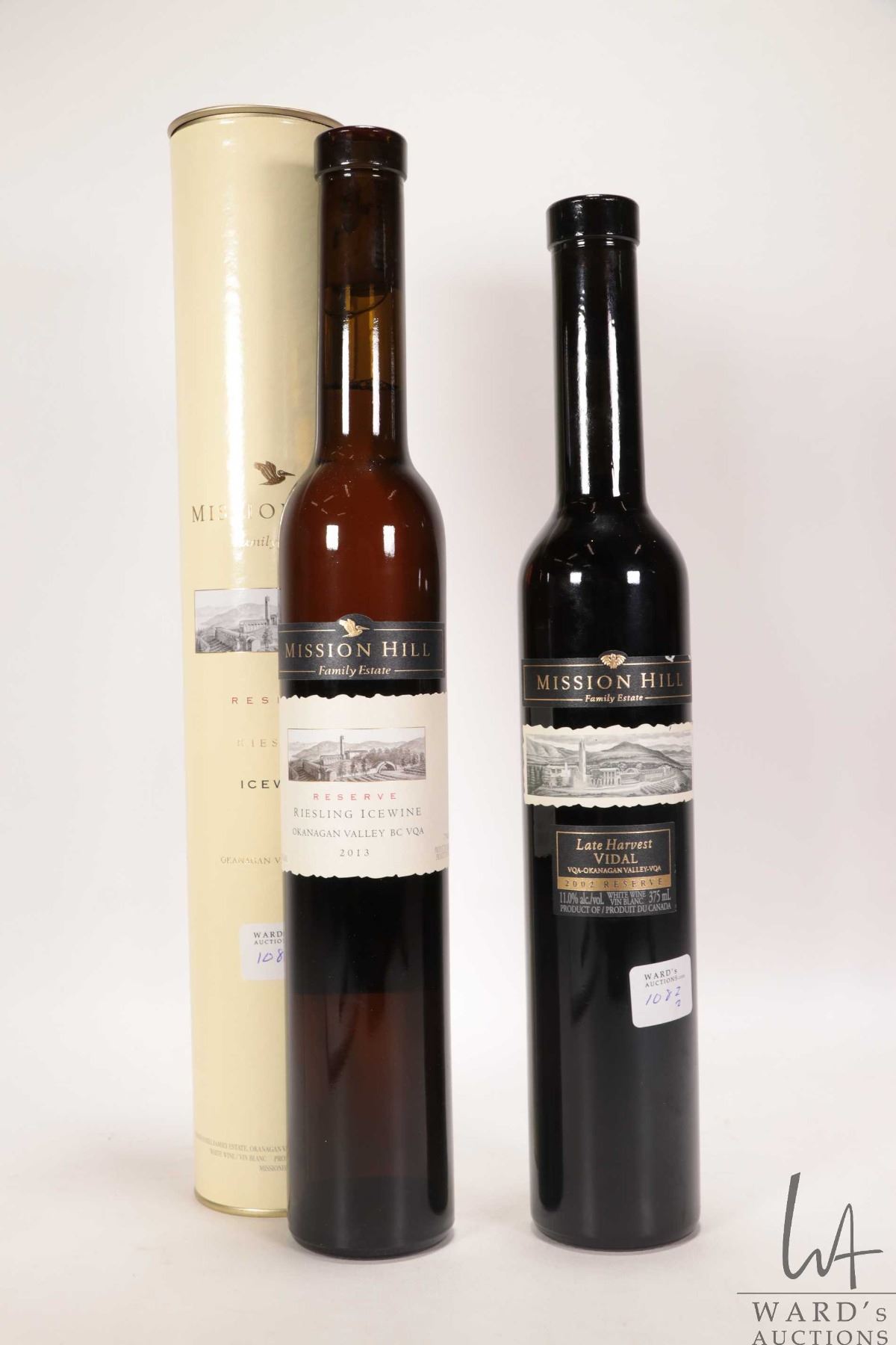 Mission Hill/ Riesling Ice Wine/ 375ml/ 7.7% ABV and Mission Hill/ 2002/ Late Harvest Vidal/ 375ml/ 11% ABV Note: Alcohol cannot be insured by any courier in Canada. Local pick up is recommended. Canadian buyers only.