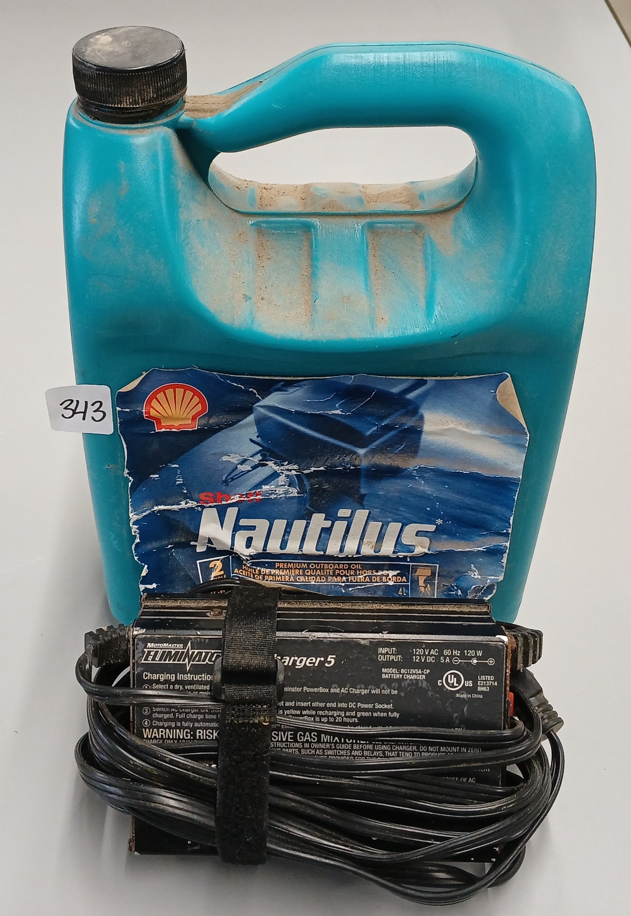 Lot 343 LOT OF 2 - MOTOMASTER ELIMINATOR AC CHARGER 5 & SHELL NAUTILUS PREMIUM OUTBOARD OIL