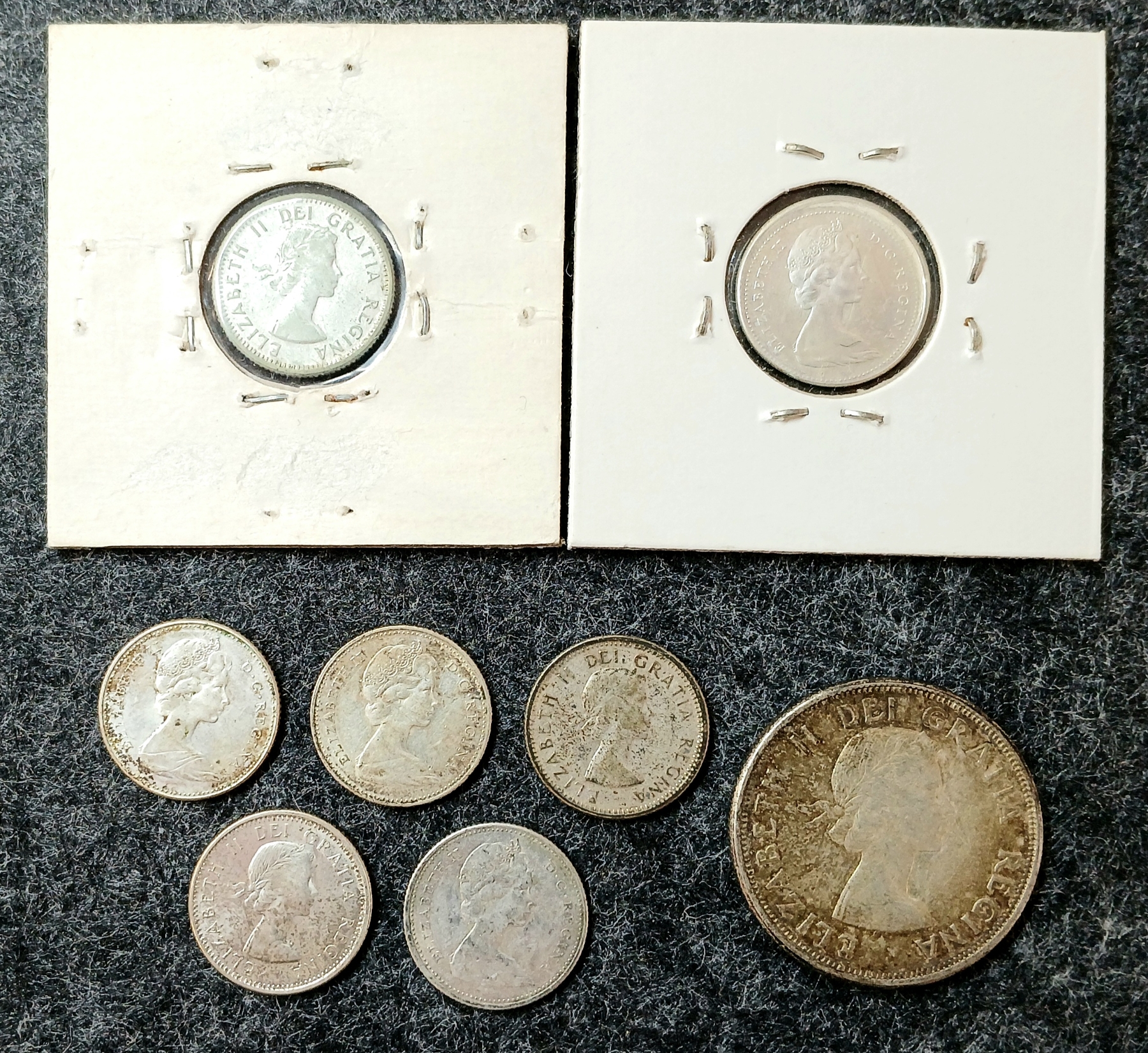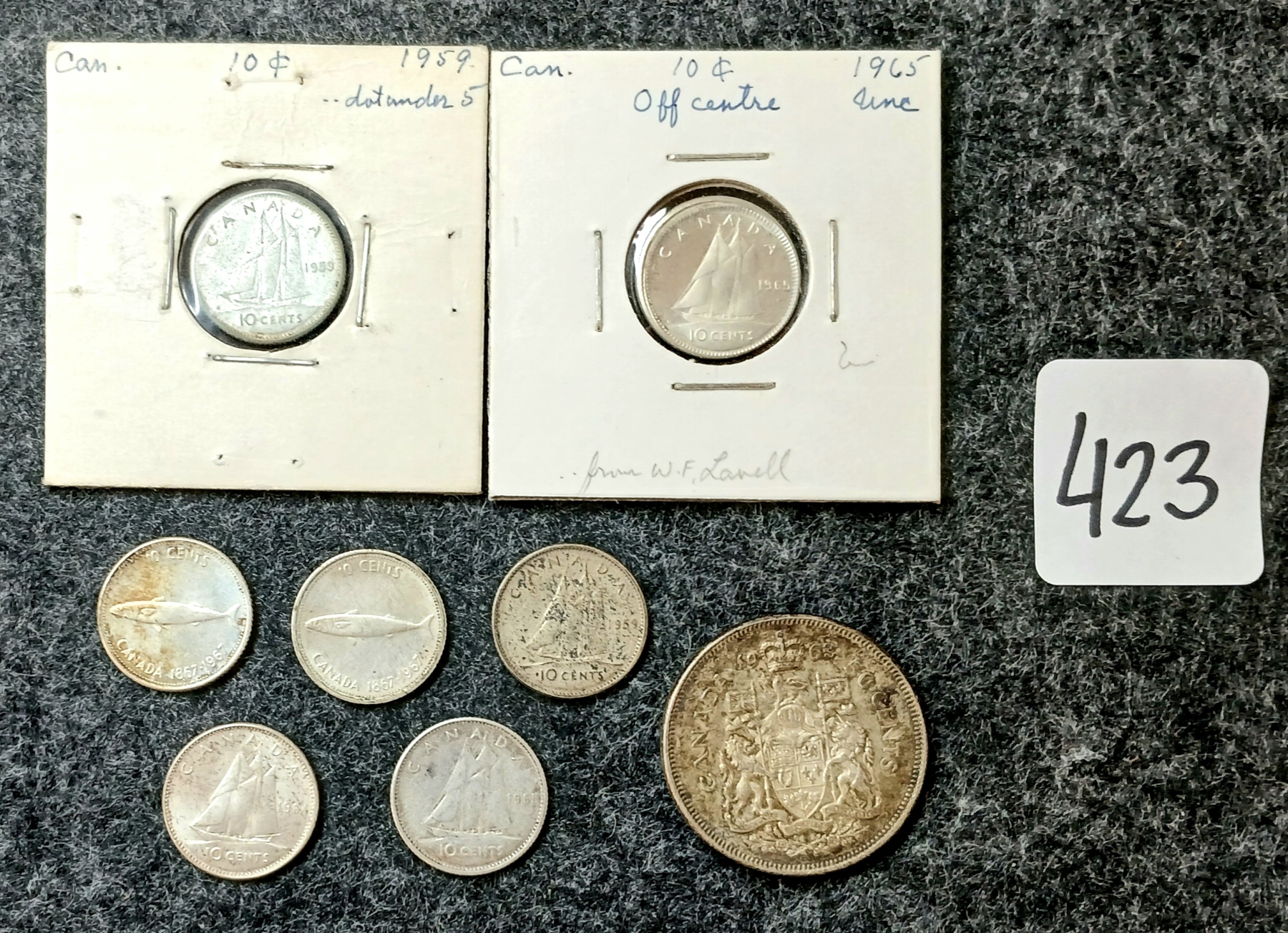 Lot 423 LOT OF 8 - 1963 CDN 50 CENT COIN & 1959-1967 CDN 10 CENT COINS