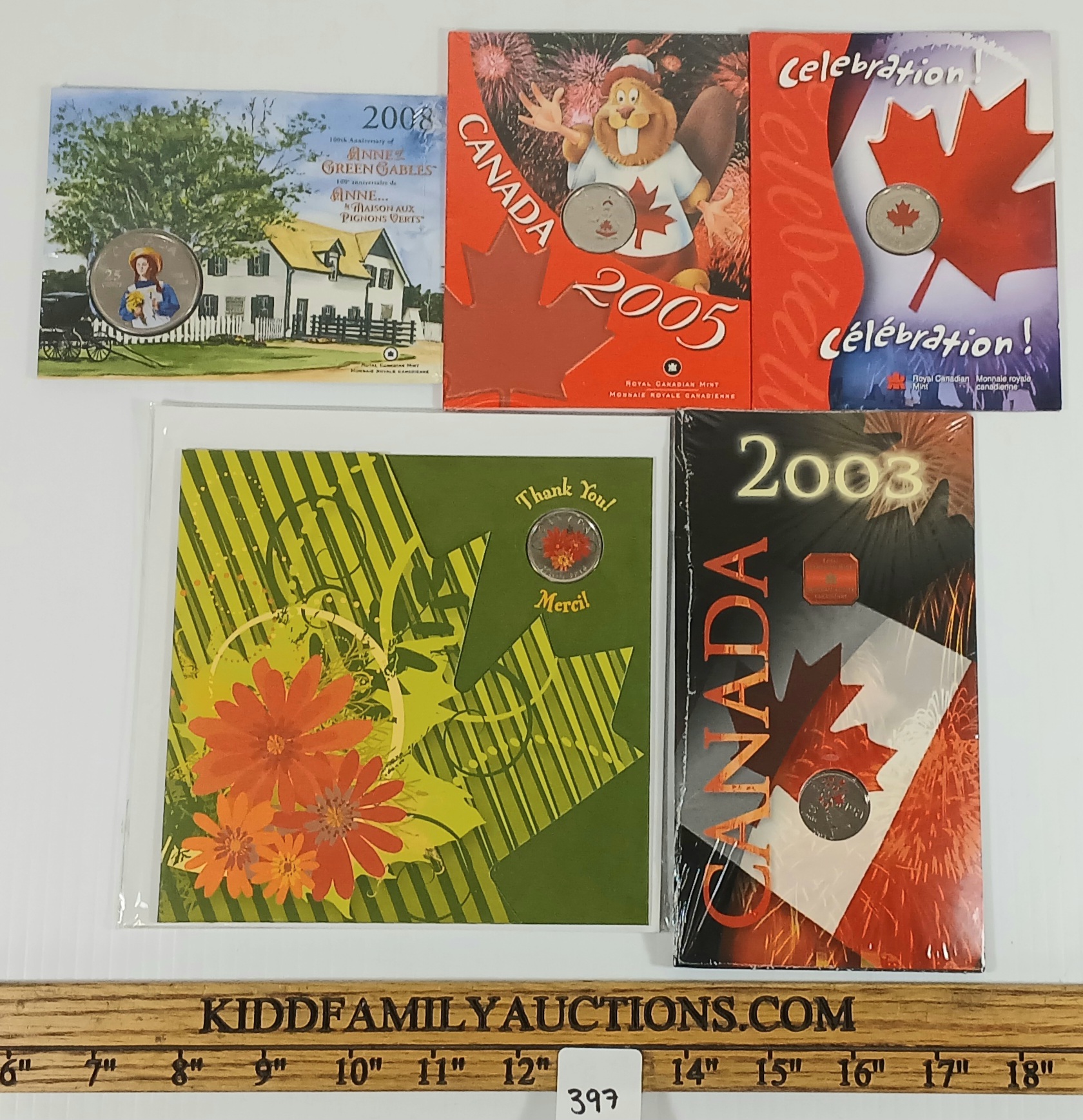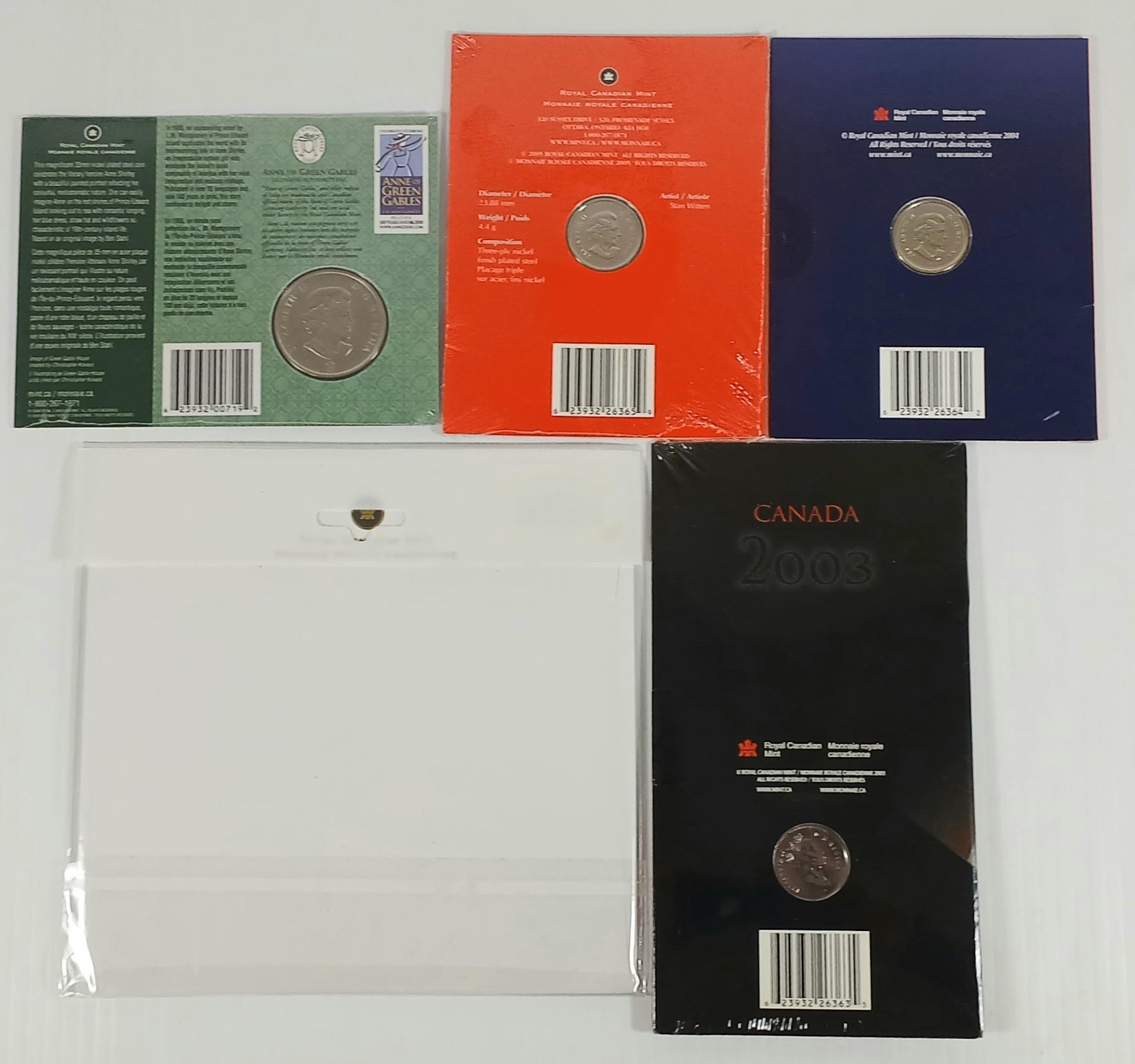 Lot 397 LOT OF 5 - 2003-2010 RCM 25 CENT COINS - ANN OF GREEN GABLES, THANK YOU! MERCI! ETC