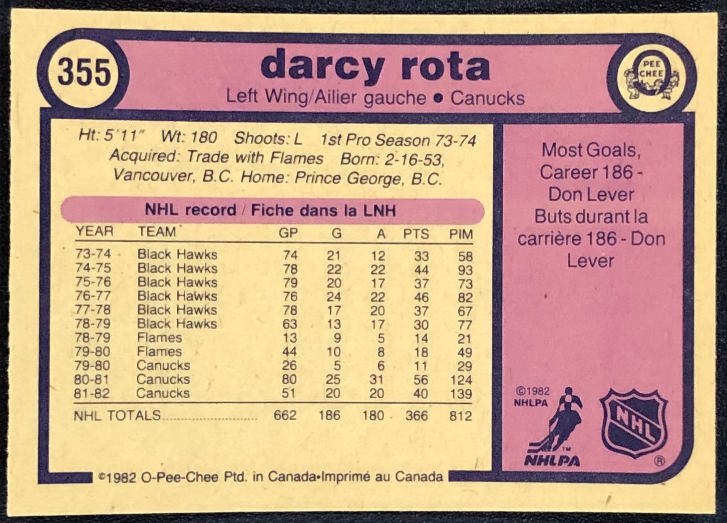 Lot 64 1982-83 O-PEE-CHEE DARCY ROTA