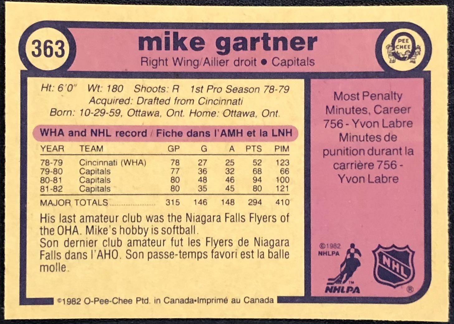 Lot 86 1982-83 O-PEE-CHEE MIKE GARTNER (HOF)