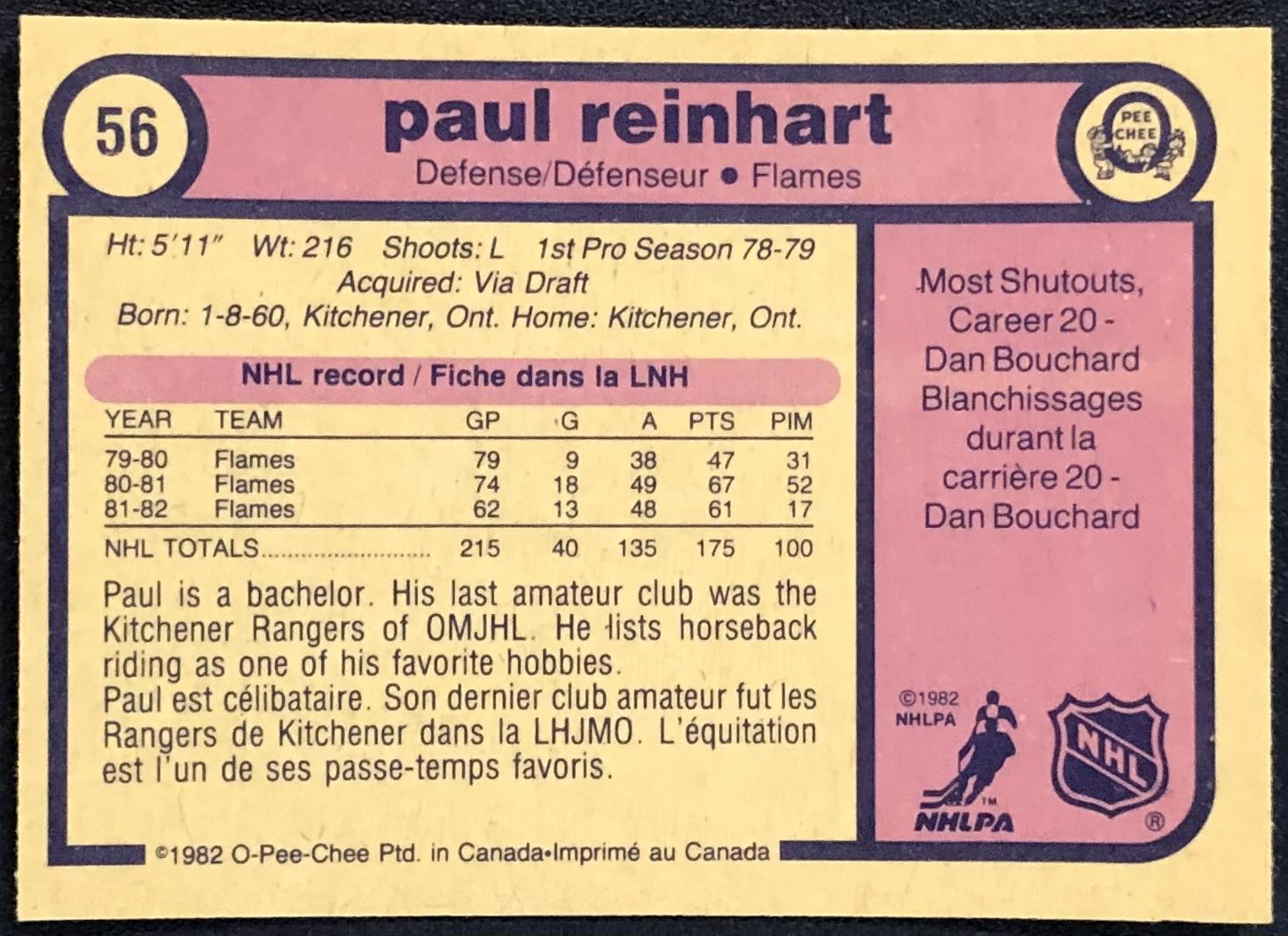 Lot 91 1982-83 O-PEE-CHEE PAUL REINHART