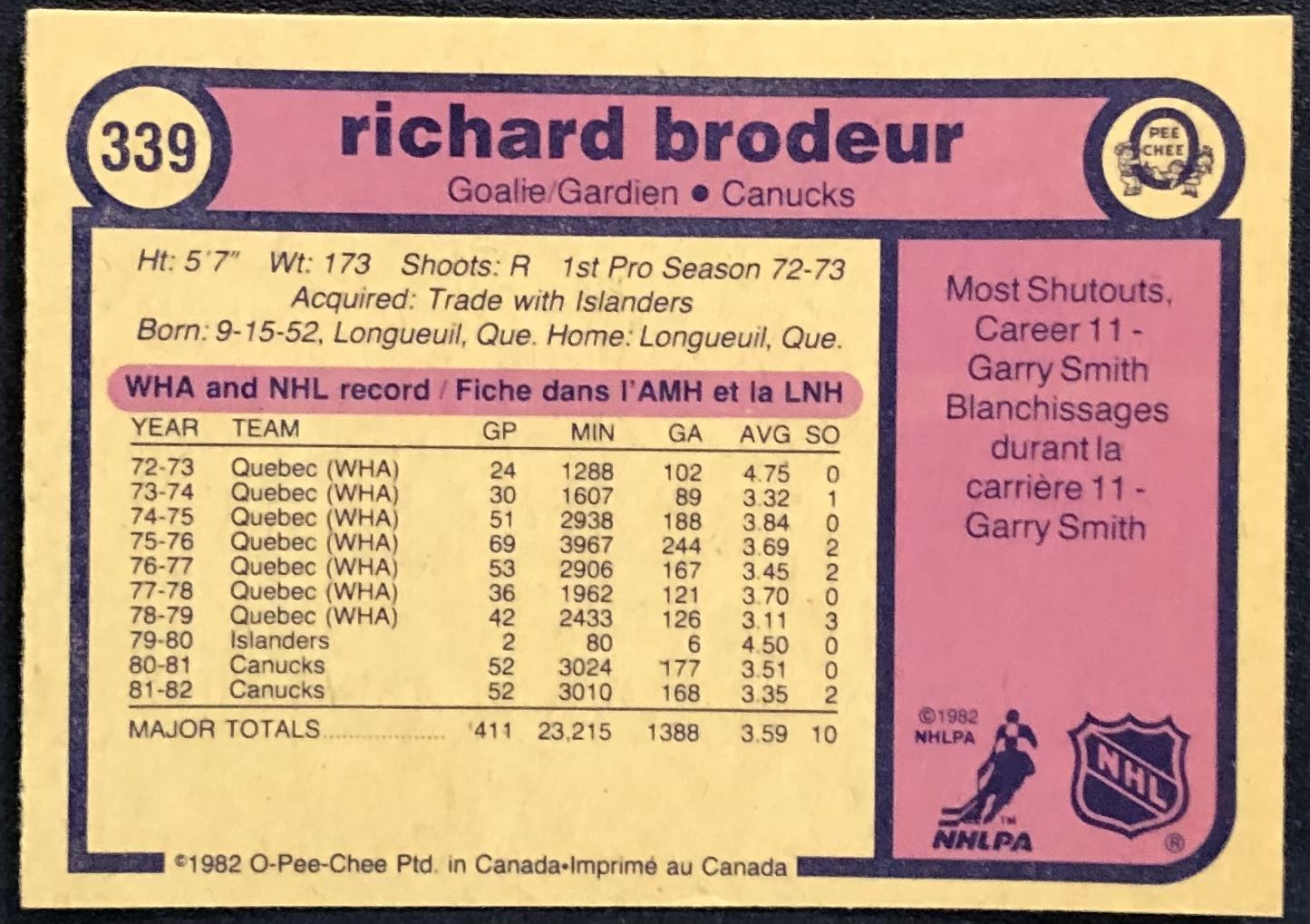 Lot 95 1982-83 O-PEE-CHEE RICHARD BRODEUR