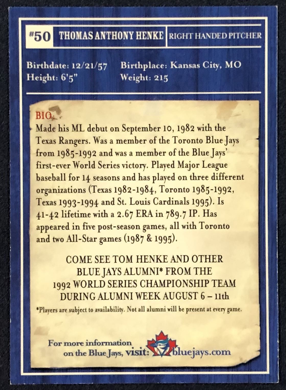 Lot 173 2003 JAYS FOUNDATION TOM HENKE