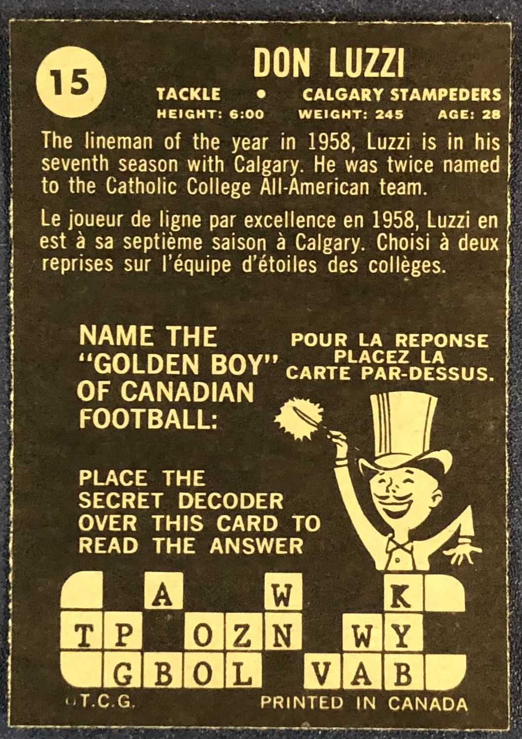 Lot 242 1964 O-PEE-CHEE CFL DON LUZZI (HOF)