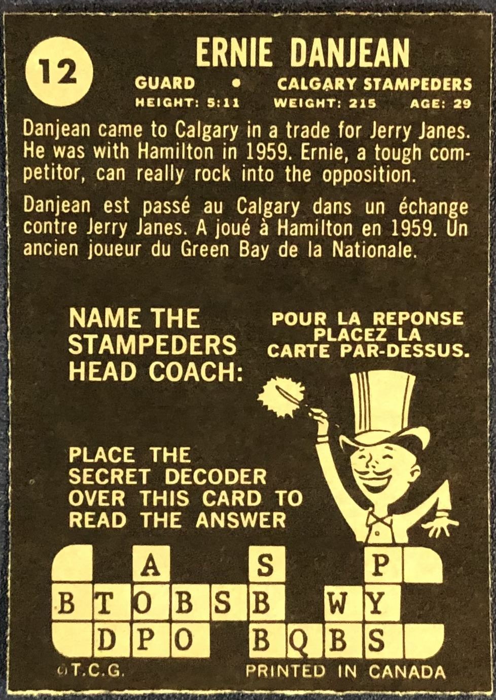 Card #12 CFL, football, vintage, OPC