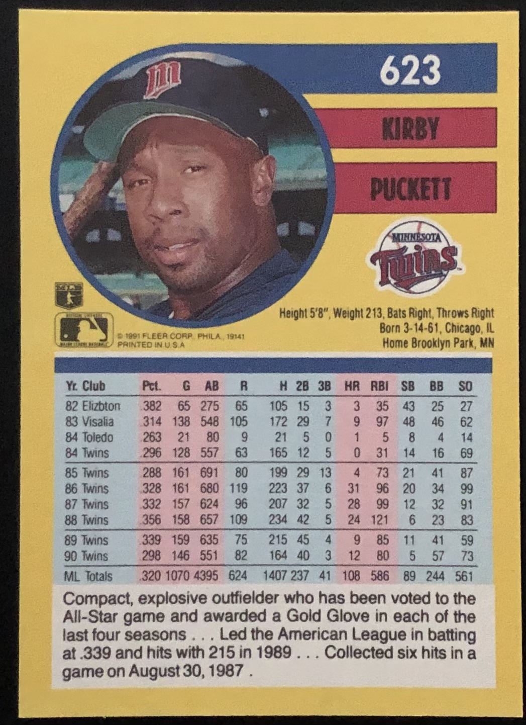 Lot 288 1991 FLEER KIRBY PUCKETT (HOF)