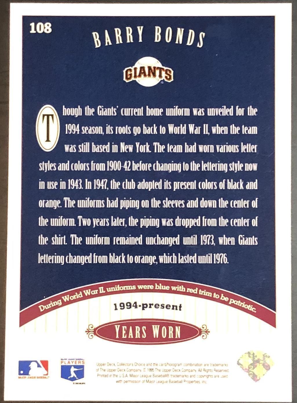 Lot 360 1996 UPPER DECK TRADITIONAL THREADS BARRY BONDS