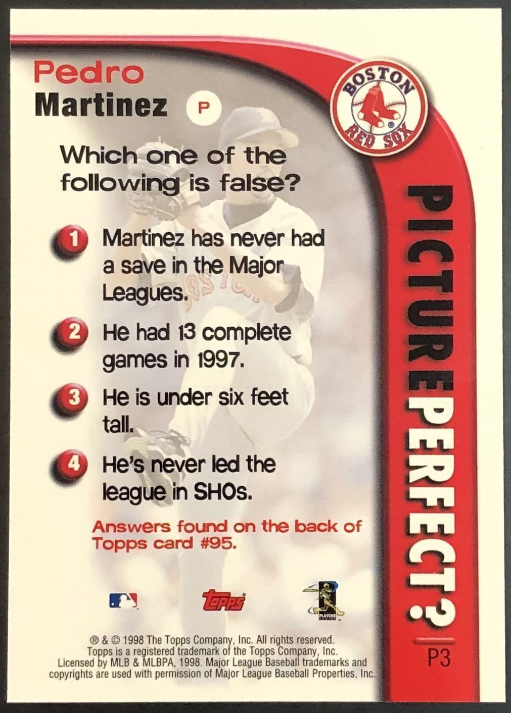 Lot 372 1998 TOPPS PEDRO MARTINEZ (HOF)