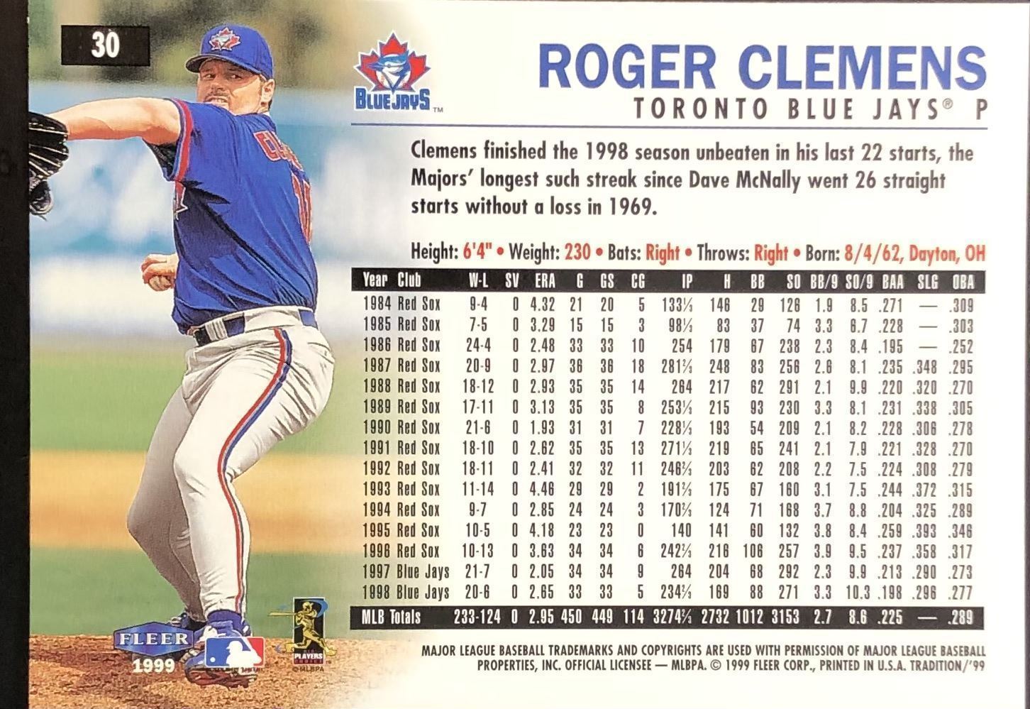 Lot 373 1999 FLEER ROGER CLEMENS
