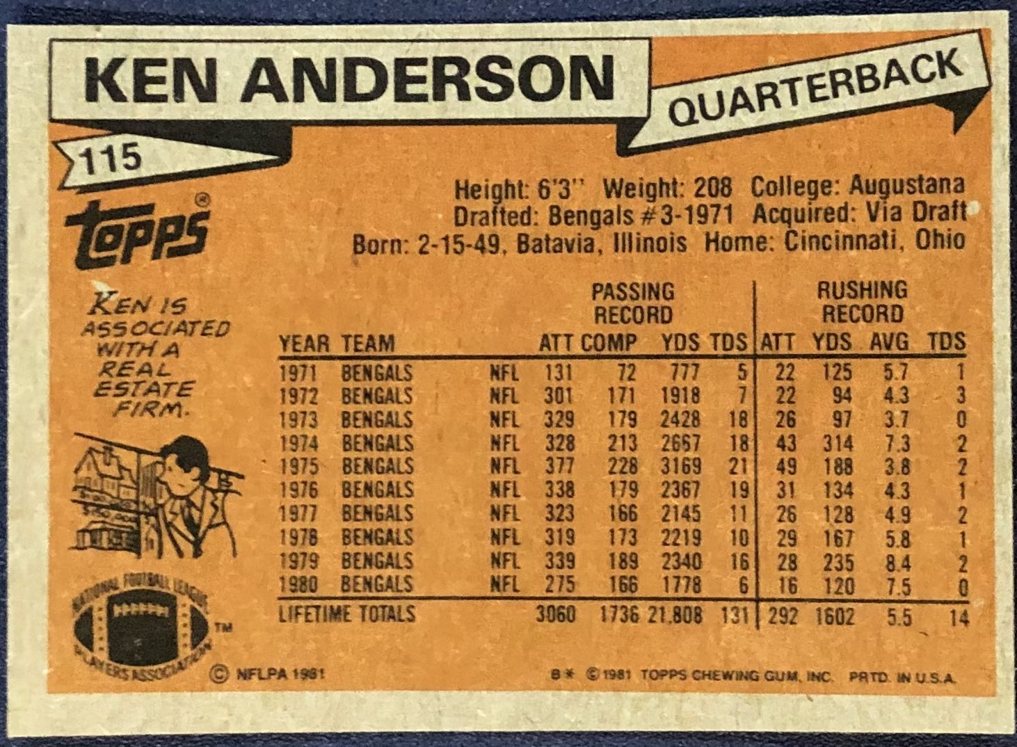Lot 546 1981 TOPPS NFL KEN ANDERSON