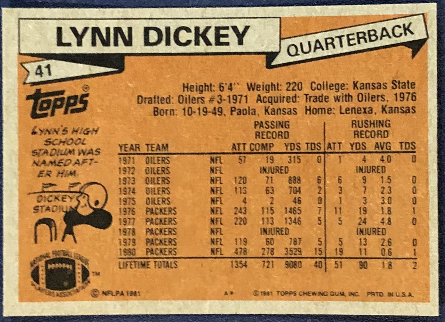 Lot 556 1981 TOPPS NFL LYNN DICKEY