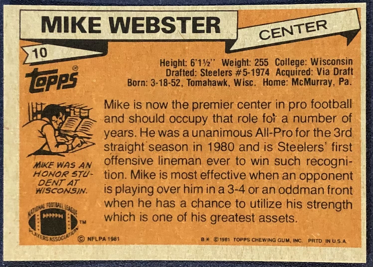 Lot 564 1981 TOPPS NFL MIKE WEBSTER (HOF)