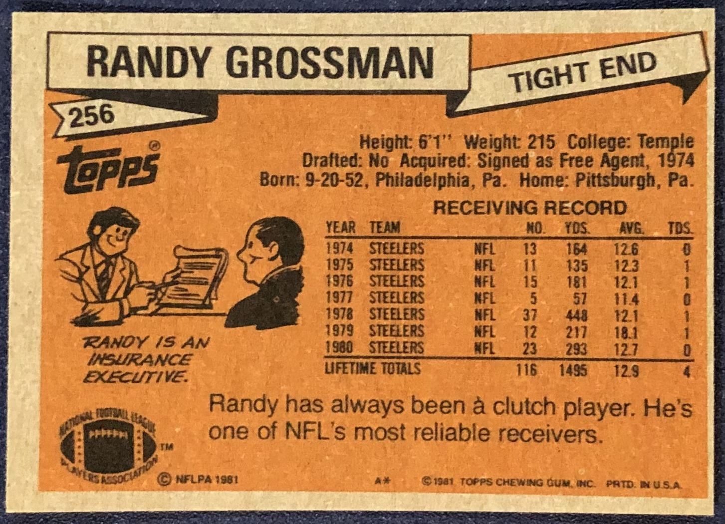 Lot 572 1981 TOPPS NFL RANDY GROSSMAN