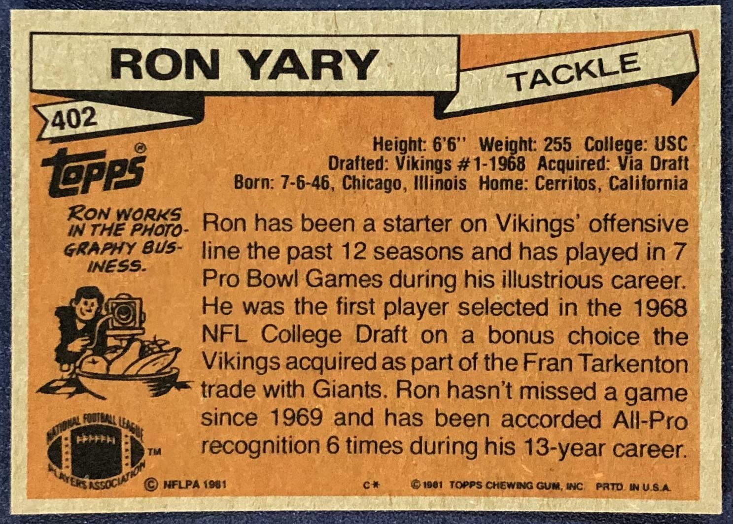 Lot 583 1981 TOPPS NFL RON YARY (HOF)