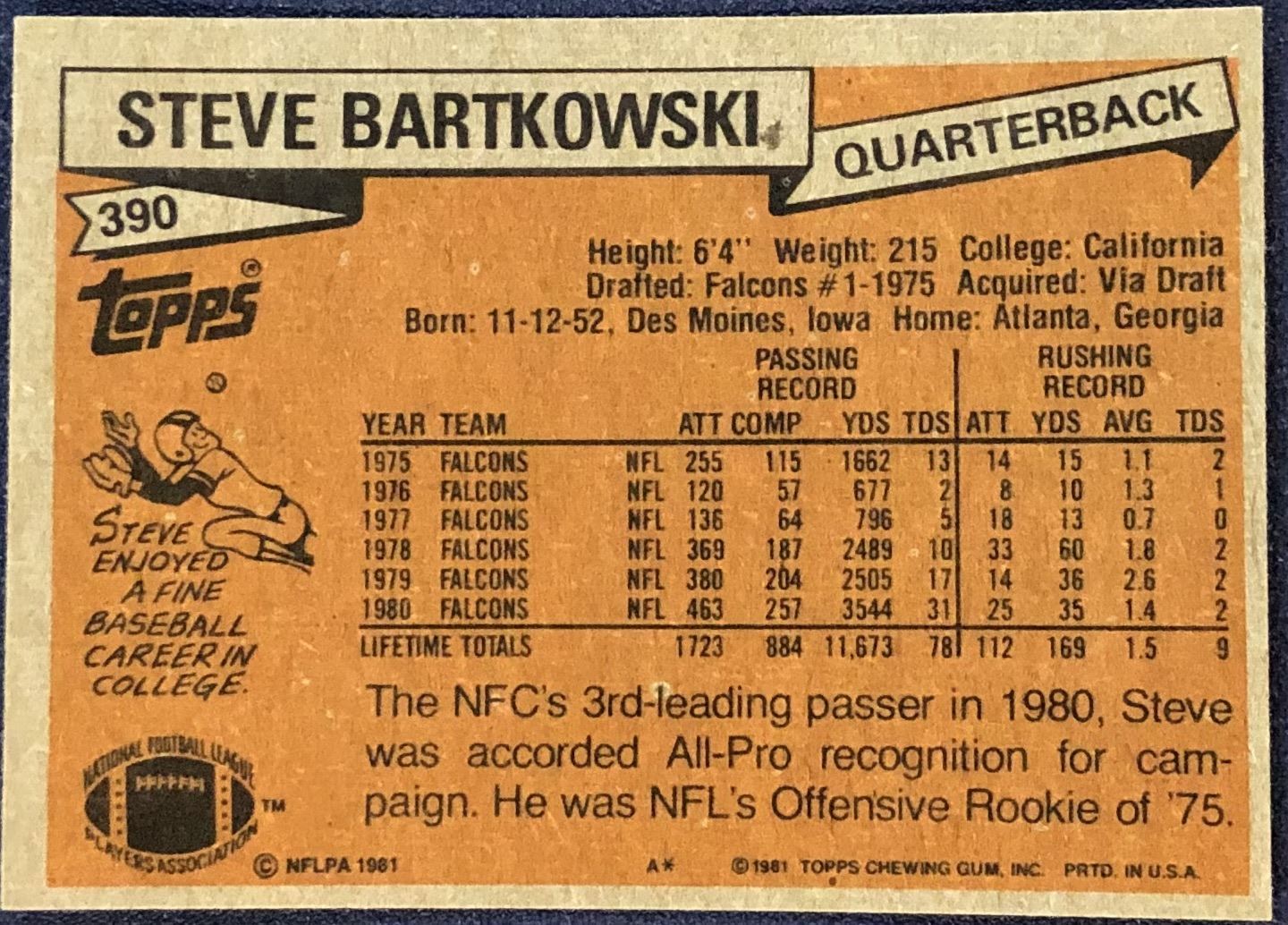 Lot 585 1981 TOPPS NFL STEVE BARTKOWSKI