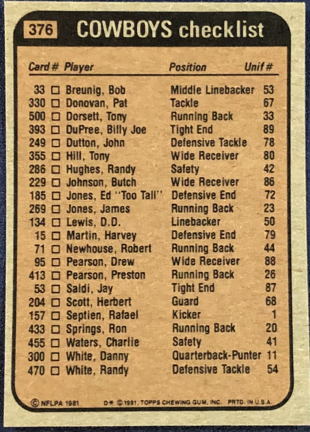 Lot 591 1981 TOPPS NFL TONY DORSETT