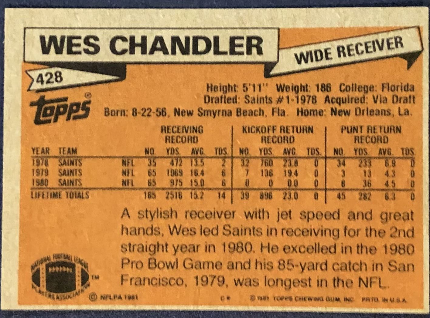 Lot 595 1981 TOPPS NFL WES CHANDLER