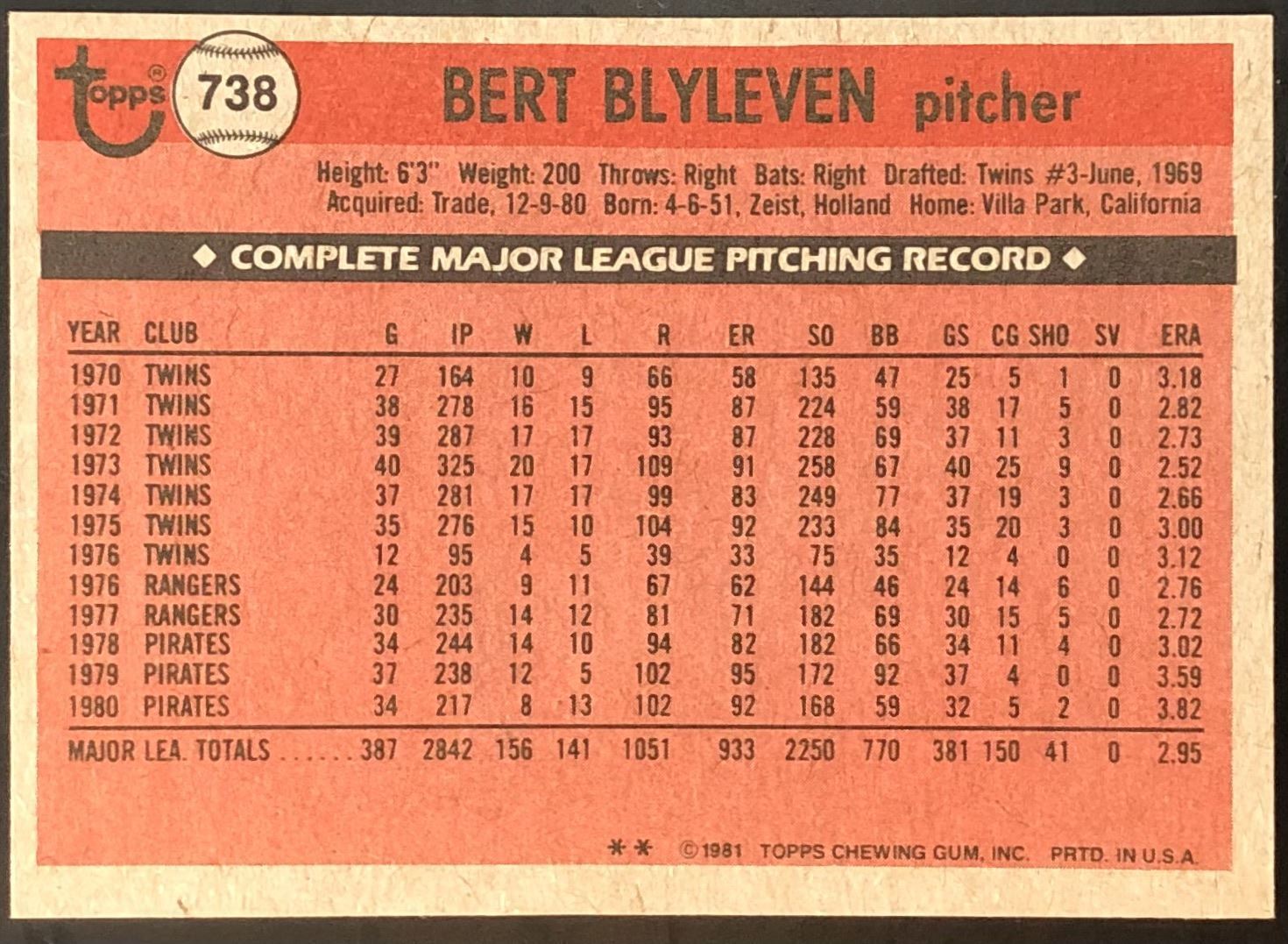 Lot 619 1981 TOPPS BERT BLYLEVEN (HOF)