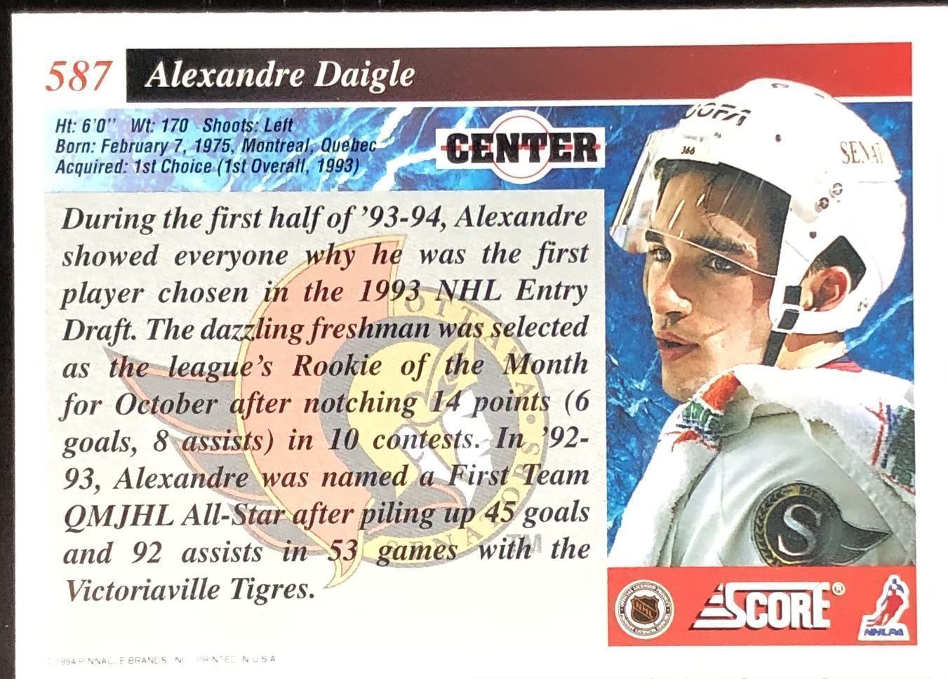 Lot 753 1993-94 SCORE ALEXANDRE DAIGLE ROOKIE CARD