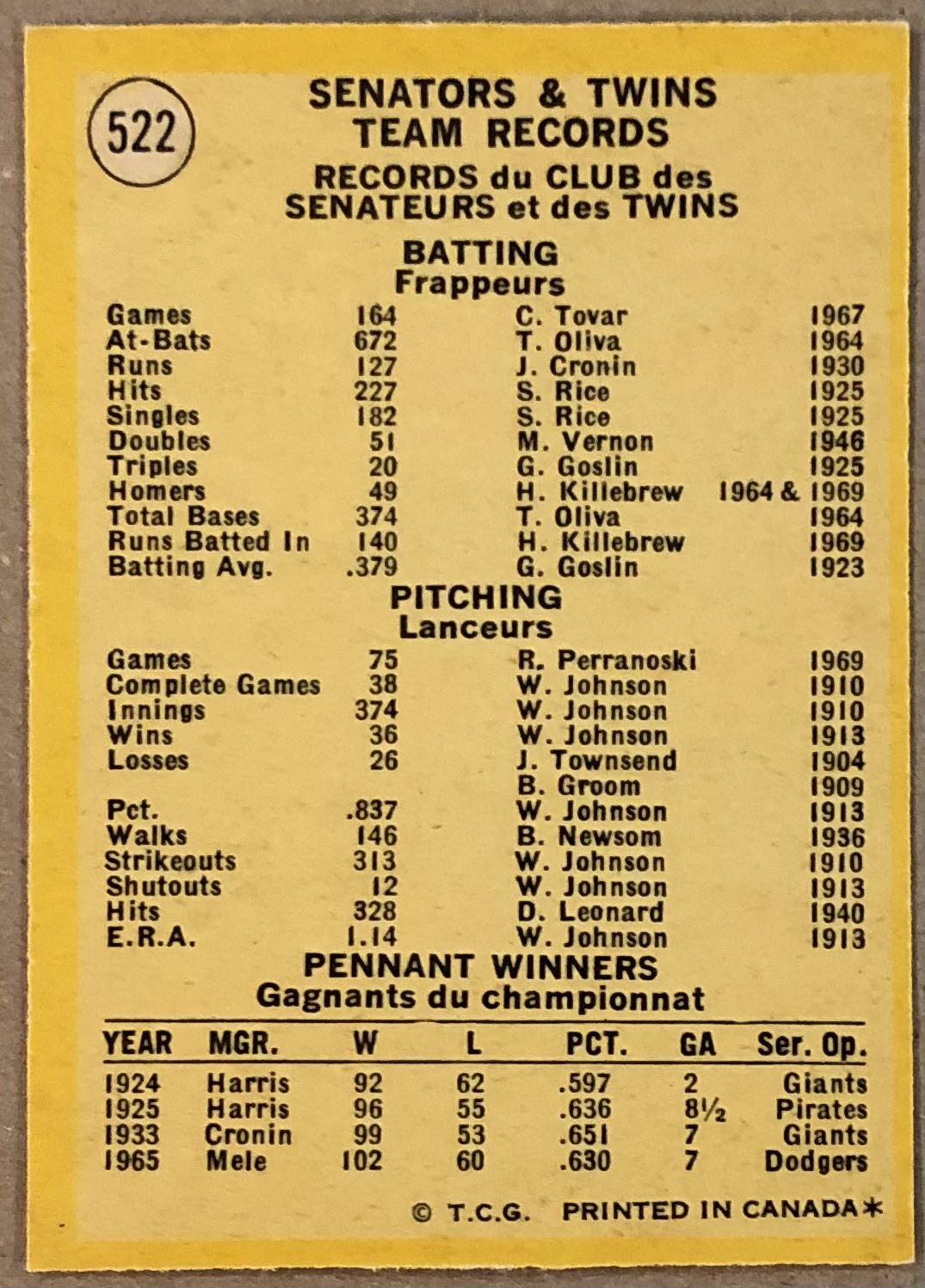 Lot 868 1971 O-PEE-CHEE MINNESOTA TWINS