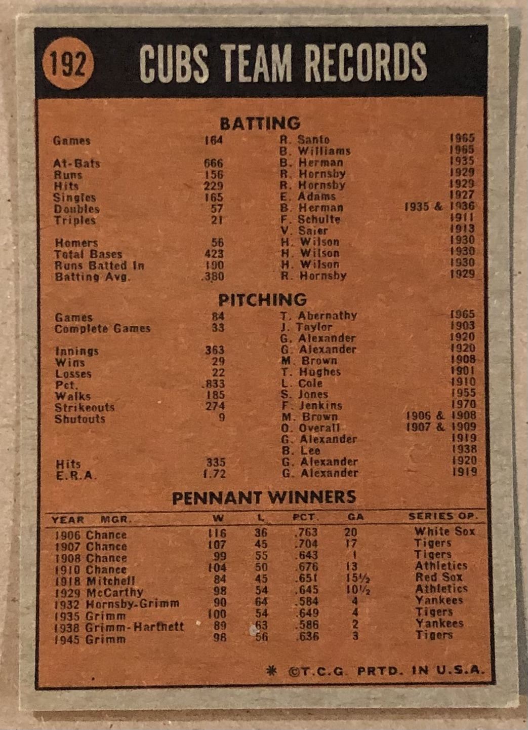 Lot 926 1972 TOPPS CHICAGO CUBS
