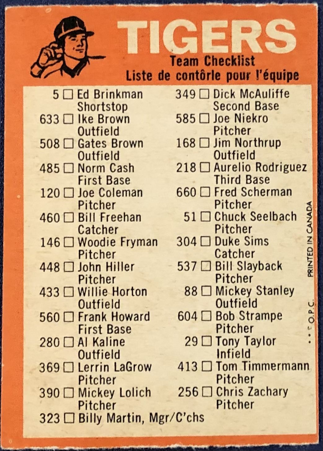 Lot 942 1973 O-PEE-CHEE DETROIT TIGERS