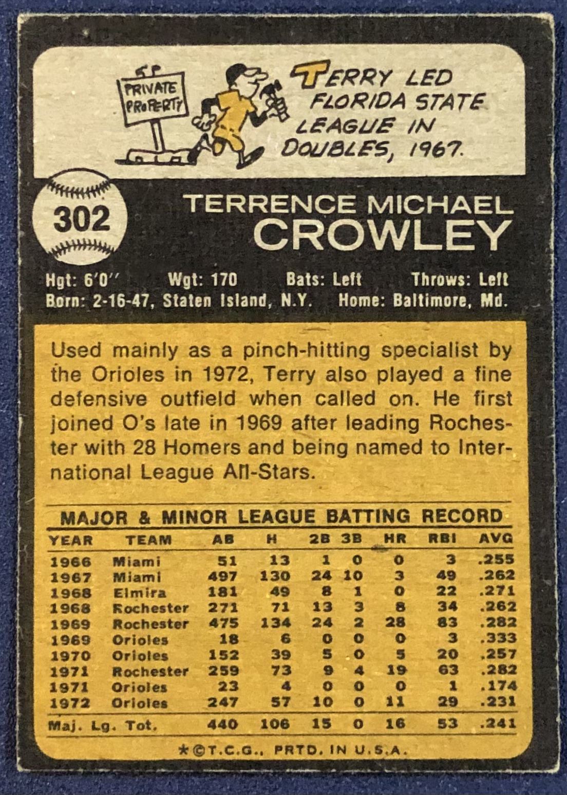 Lot 967 1973 TOPPS TERRY CROWLEY