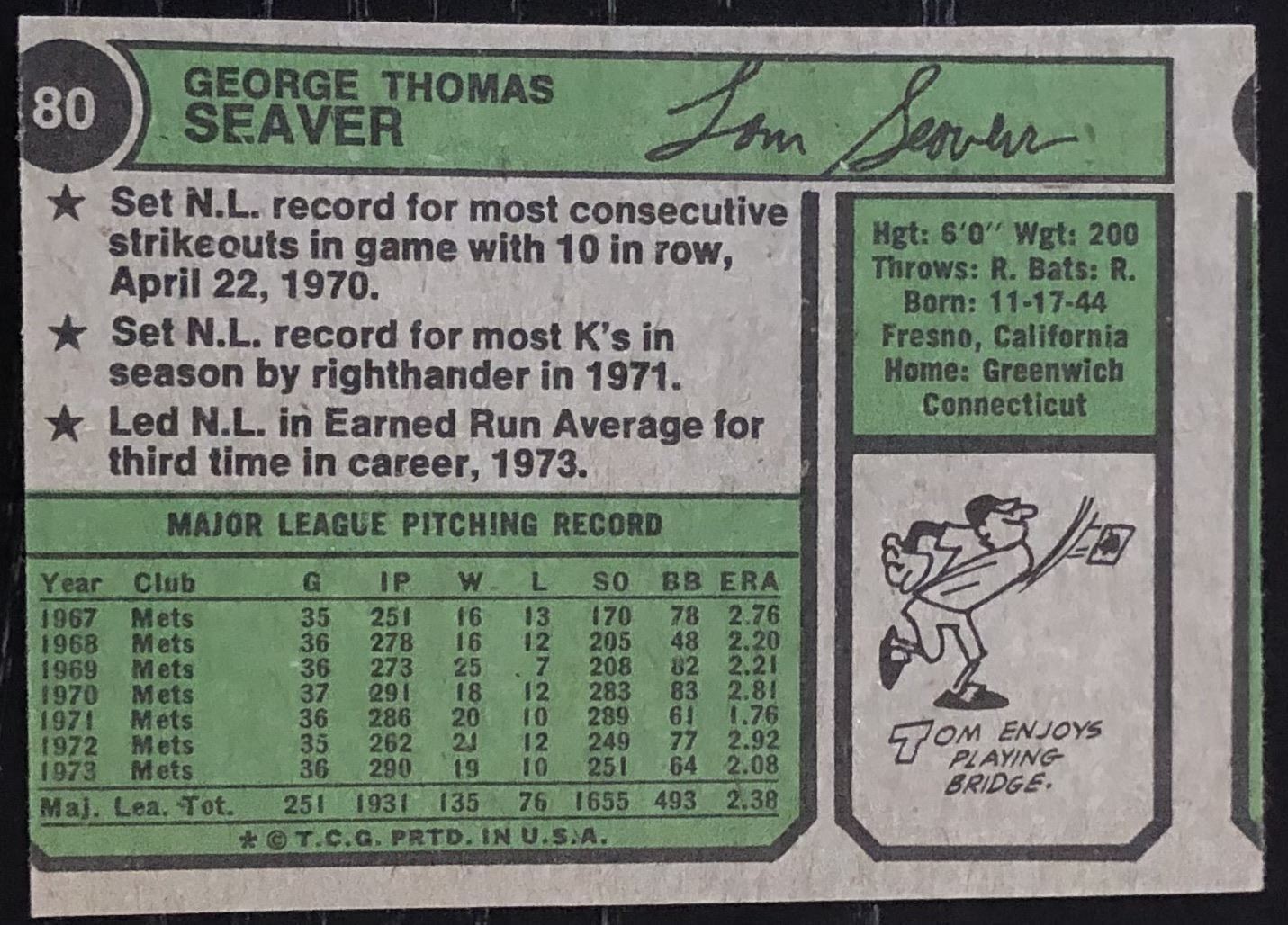 Lot 968 1974 TOPPS TOM SEAVER (HOF)