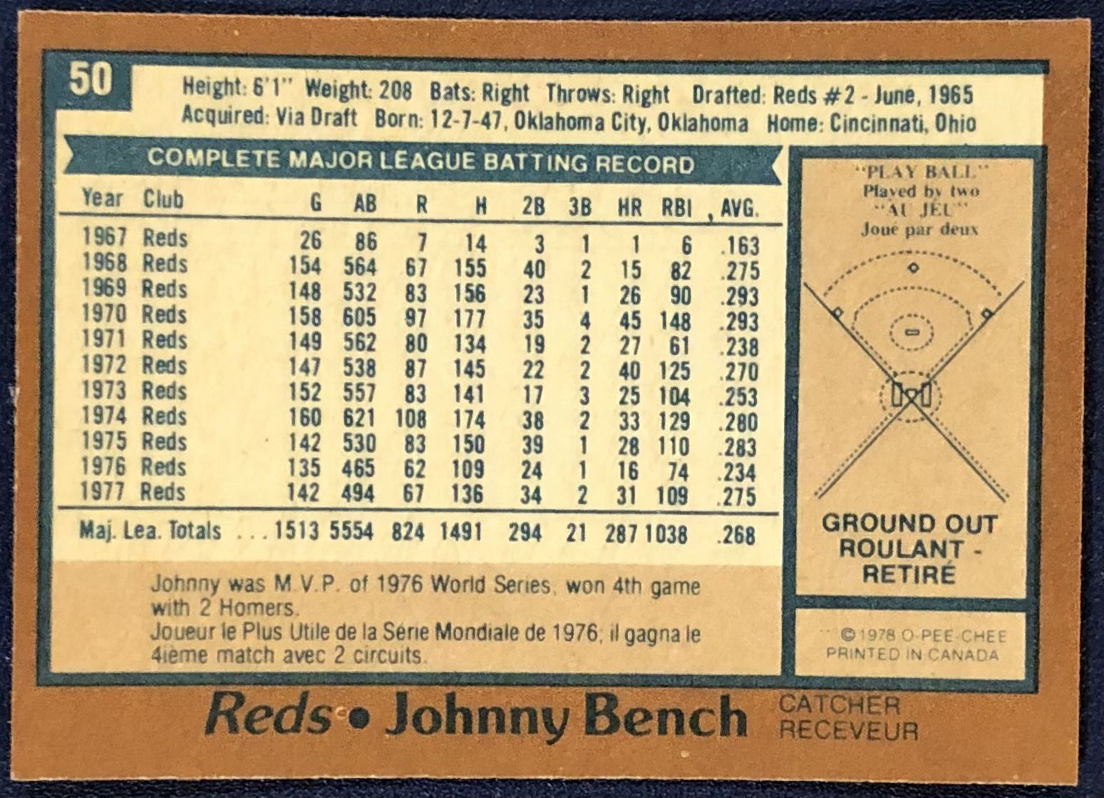 Lot 985 1978 O-PEE-CHEE JOHNNY BENCH (HOF)