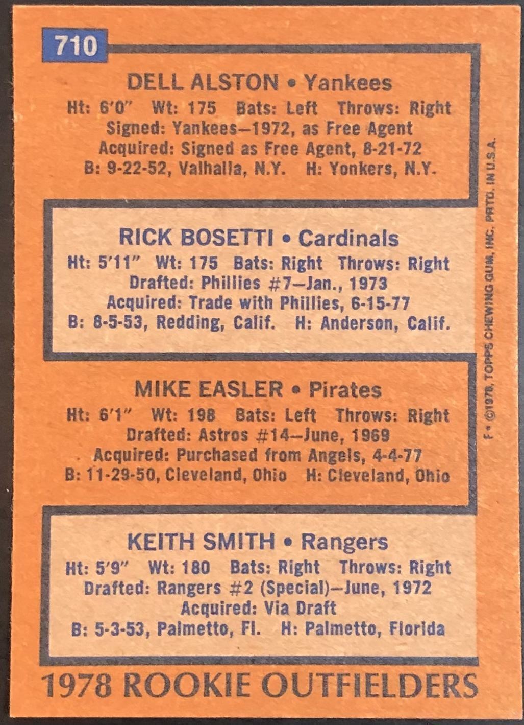 Lot 994 1978 TOPPS MIKE EASLER ROOKIE CARD