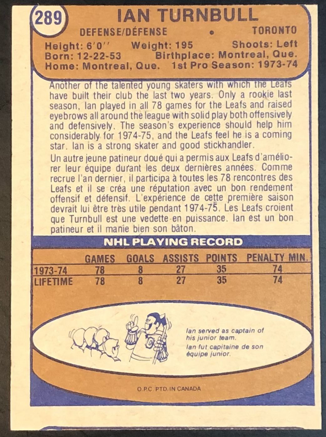 Lot 1034 1974-75 O-PEE-CHEE IAN TURNBULL ROOKIE CARD