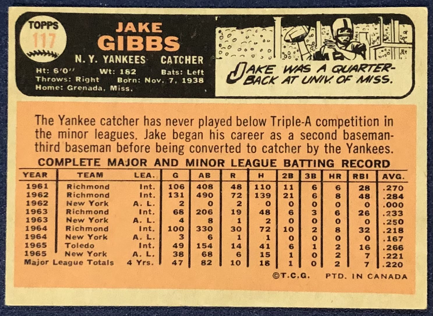 Lot 1254 1966 O-PEE-CHEE JAKE GIBBS ROOKIE CARD