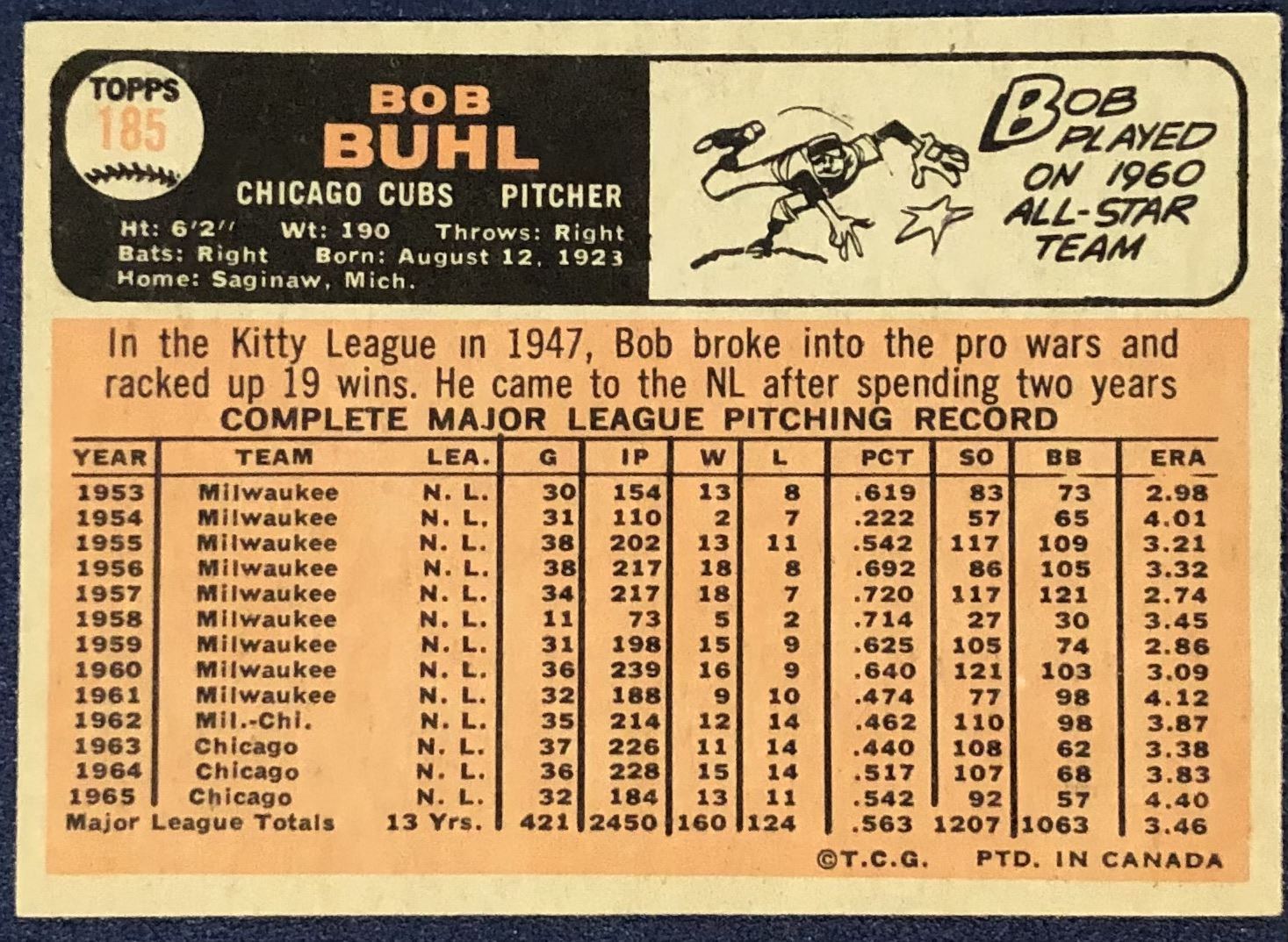 Lot 1257 1966 O-PEE-CHEE BOB BUHL