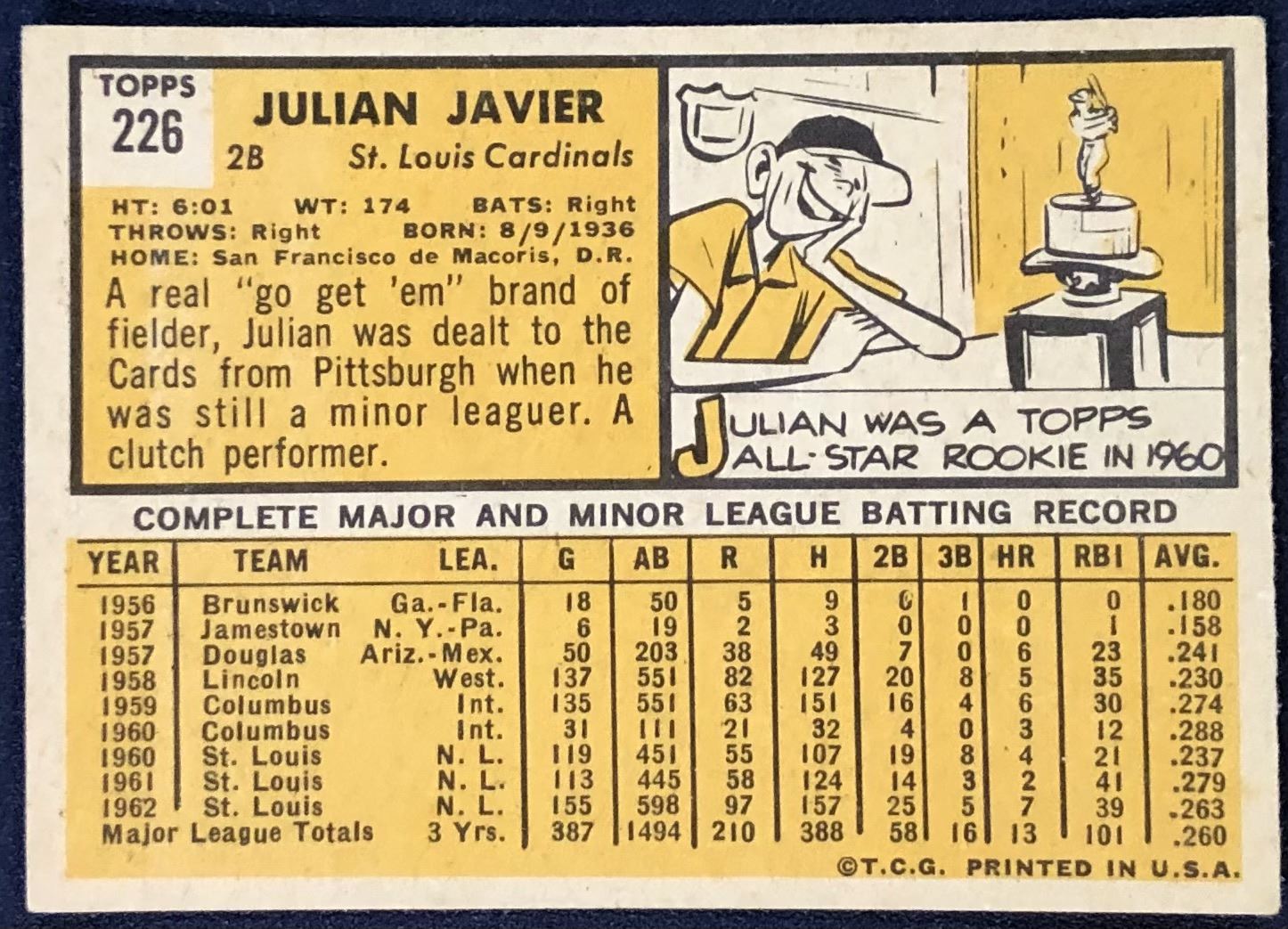 Lot 1273 1963 TOPPS JULIAN JAVIER