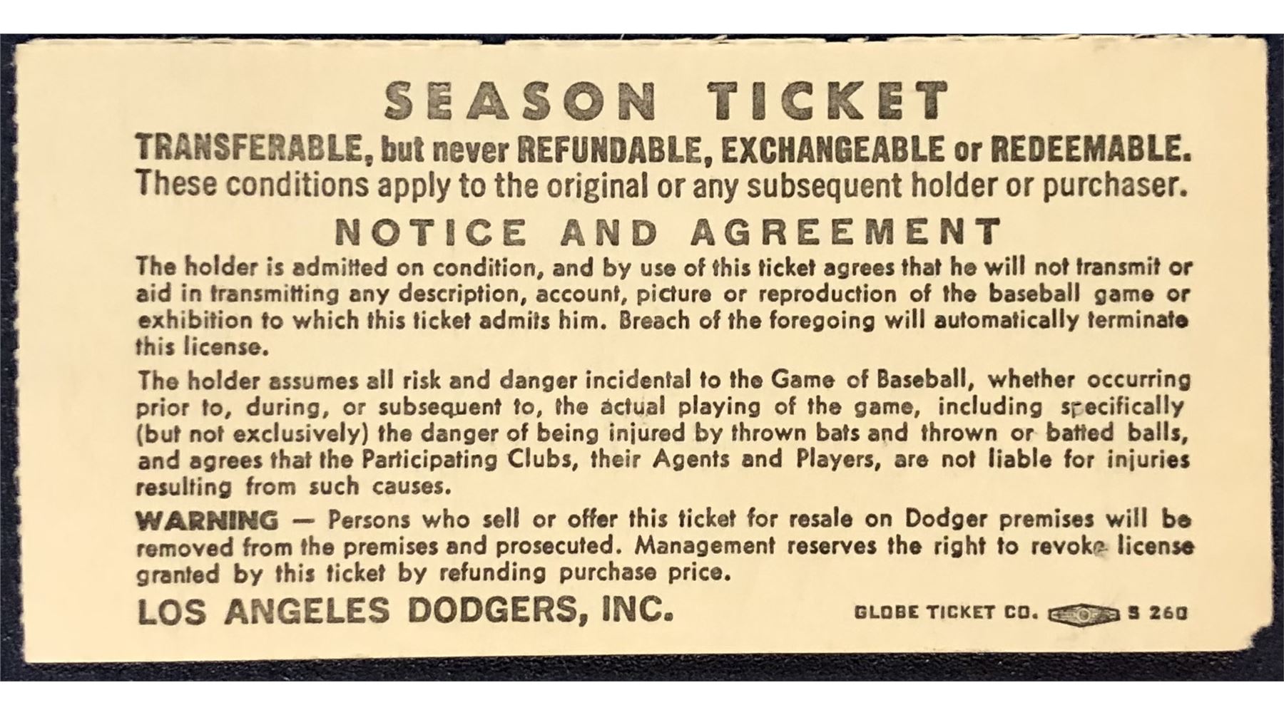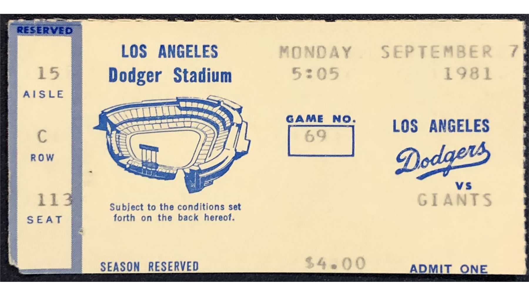 Lot 1359 1981 MAJOR LEAGUE BASEBALL TICKET STUB - SF GIANTS at L.A. DODGERS