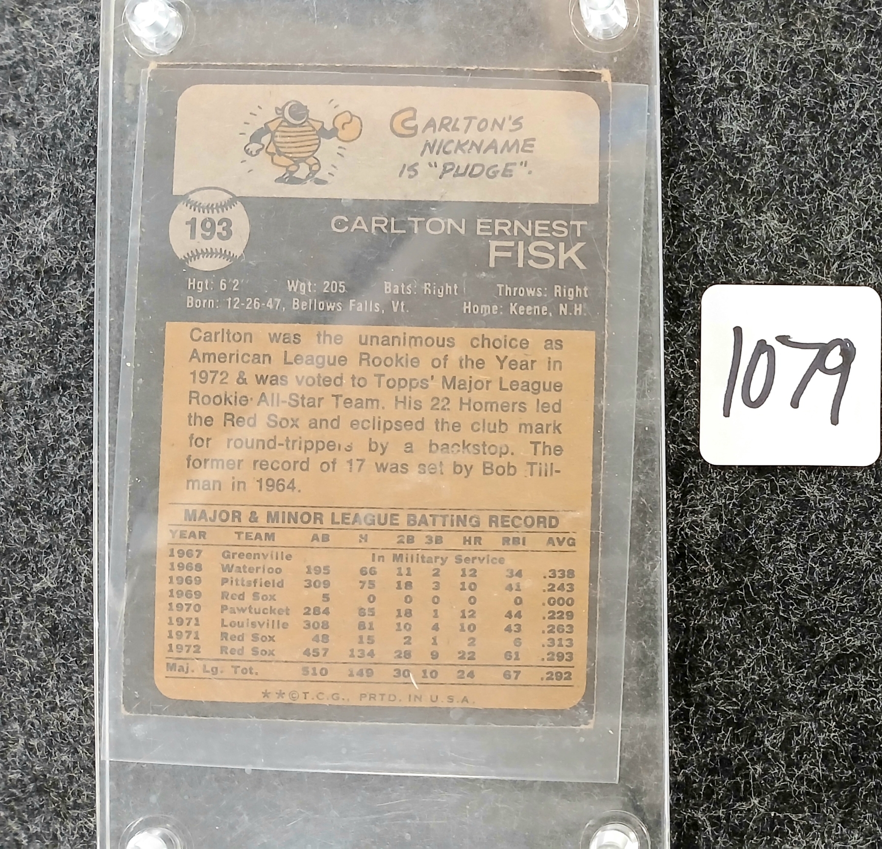 Lot 1079 1973 #193 CARLTON FISK BOSTON RED SOX - TOPPS BASEBALL CARD
