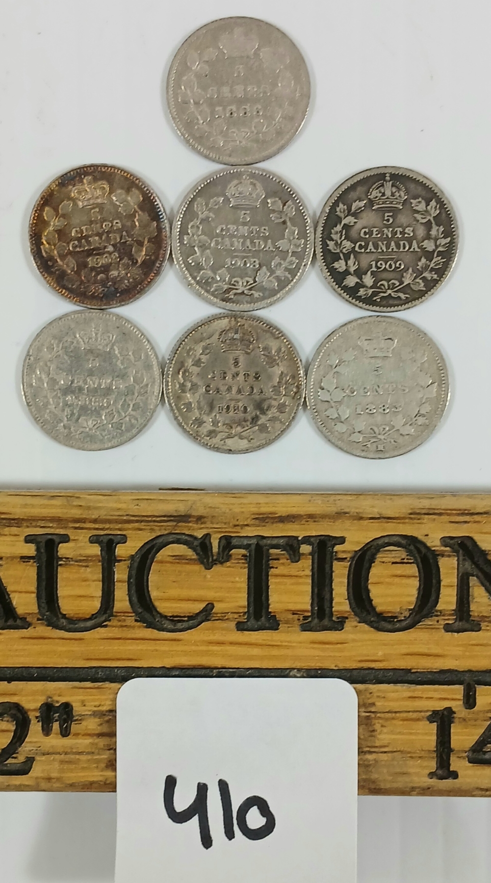 Lot 410 LOT OF 7 - 1883-1910 CDN 5 CENT COINS