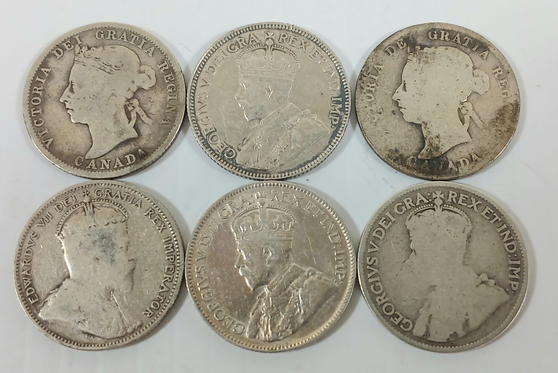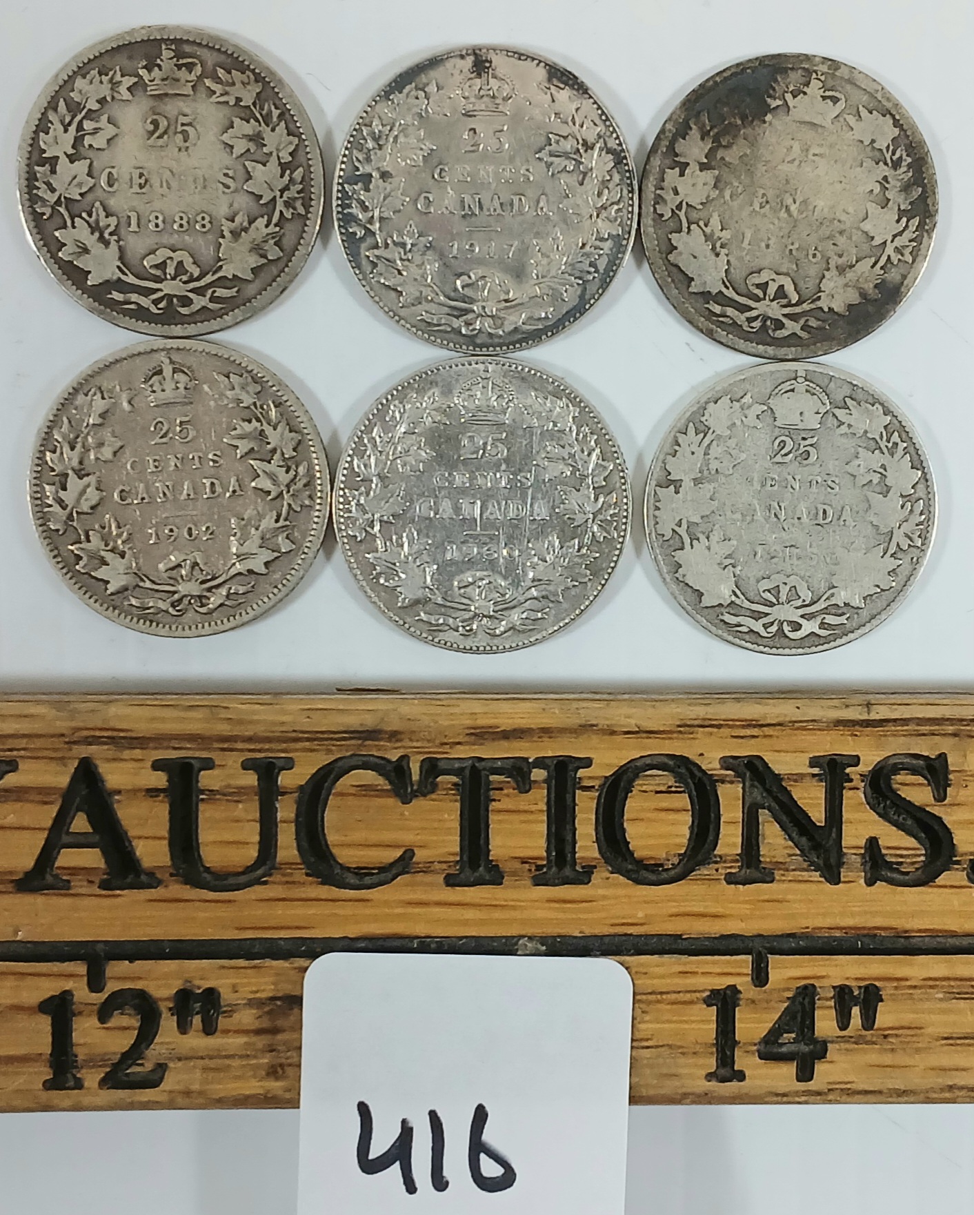 Lot 416 LOT OF 6 - 1886-1930 CDN SILVER 25 CENT COINS