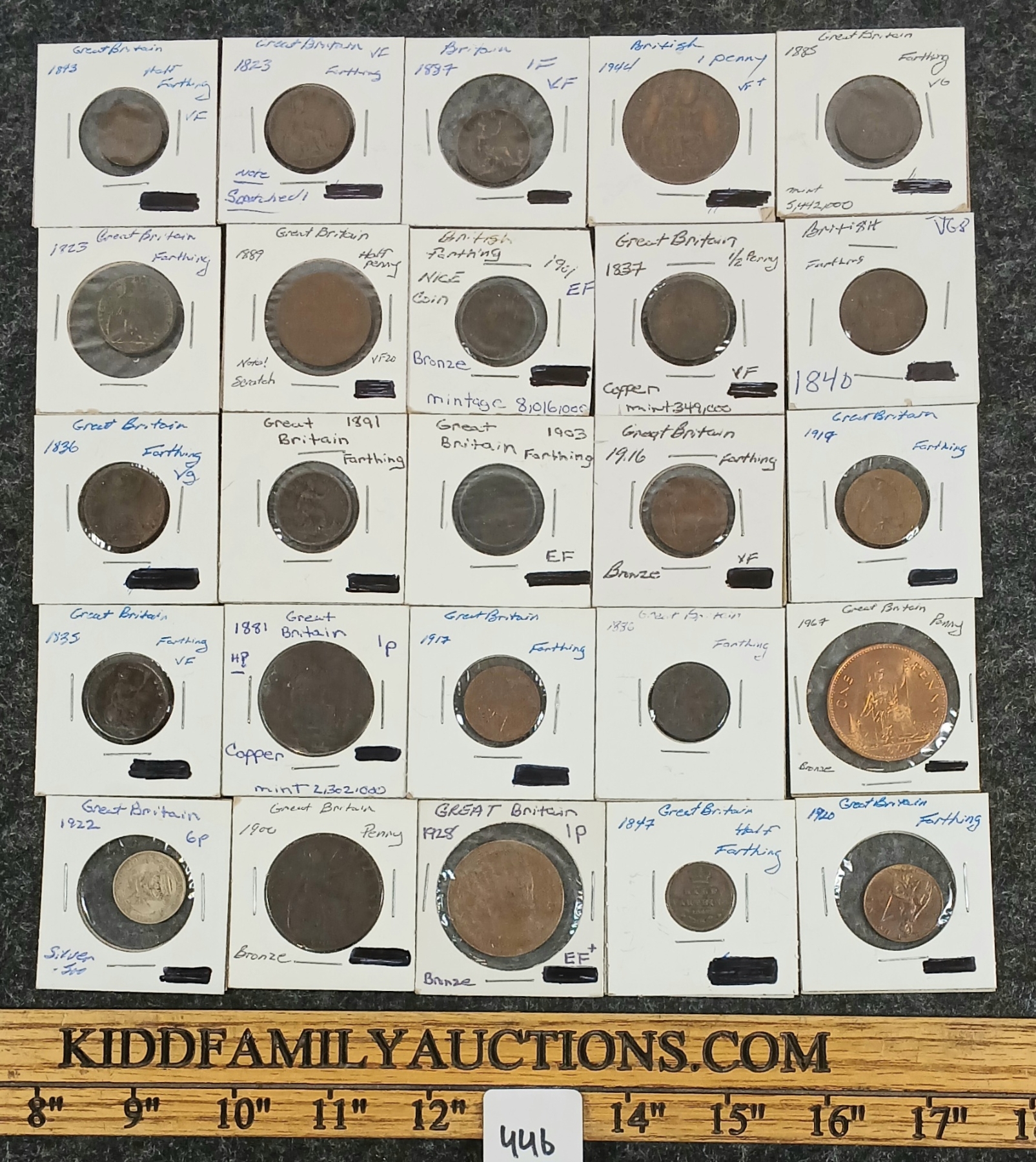 Lot 446 LOT OF 25 - MISC BRITISH COINS - 1889 HALF PENNY, 1891 FARTHING, ETC